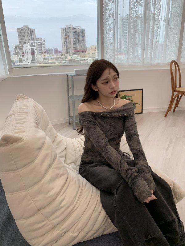 V08 本期命中款!翻領毛料抽繩鉚釘棉tee 灰