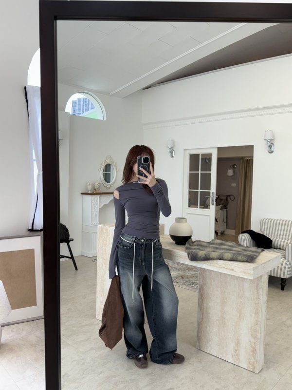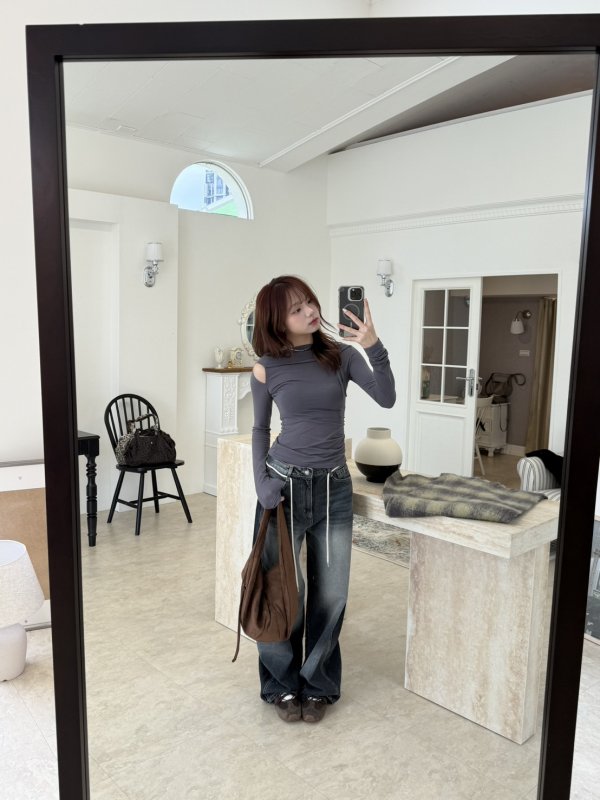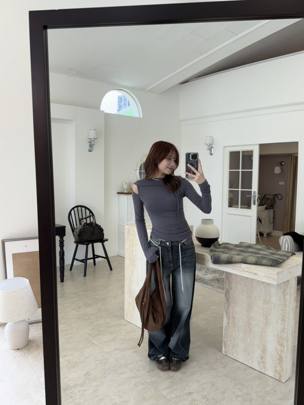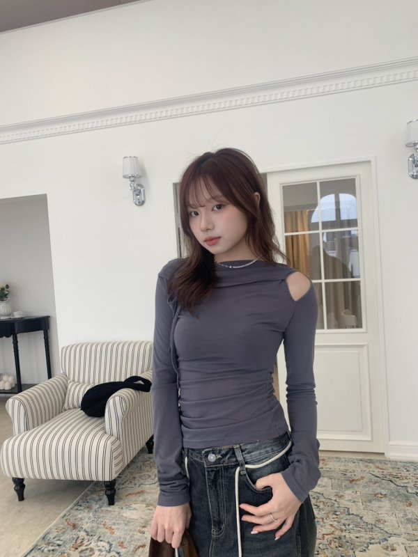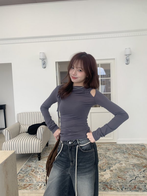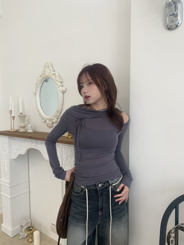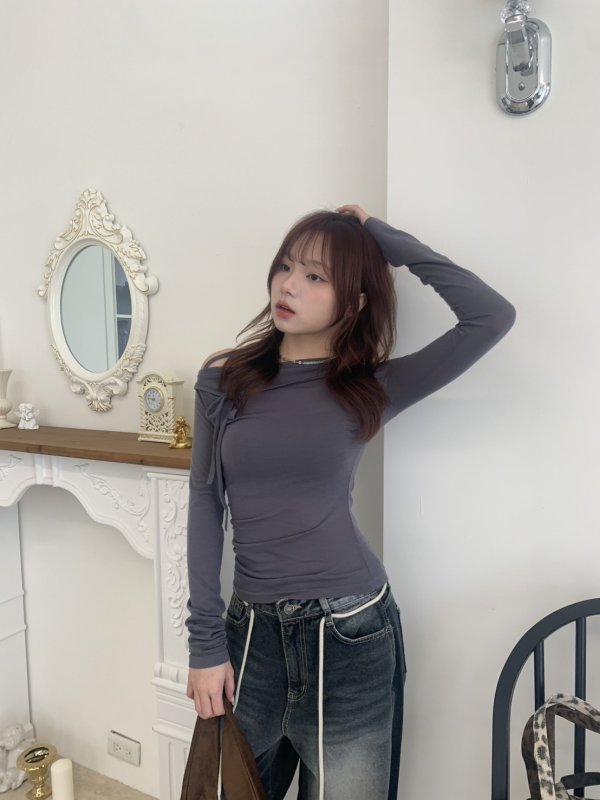 N06 四季歐膩彈力隨性綁帶棉tee 灰