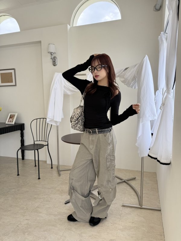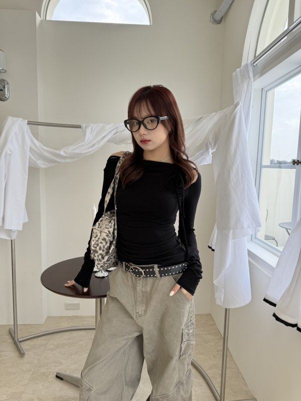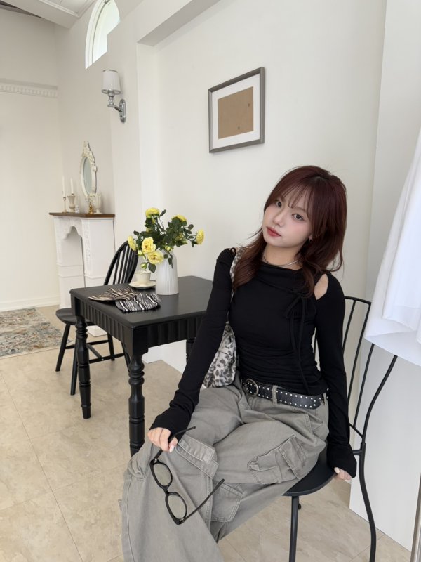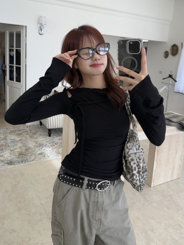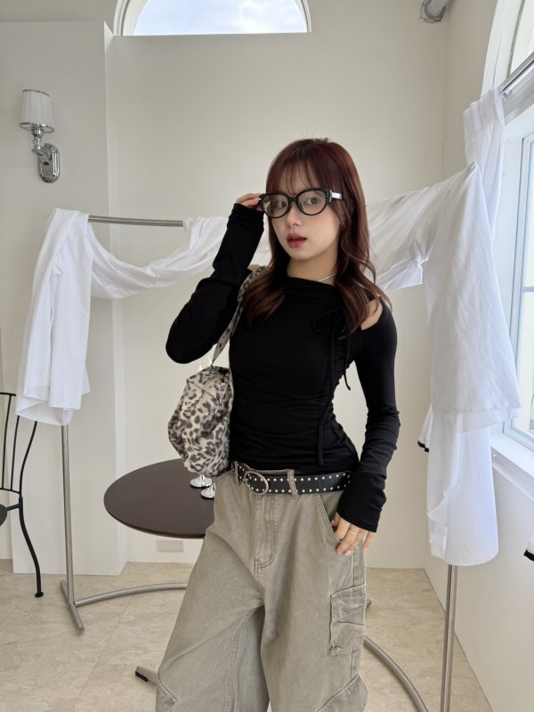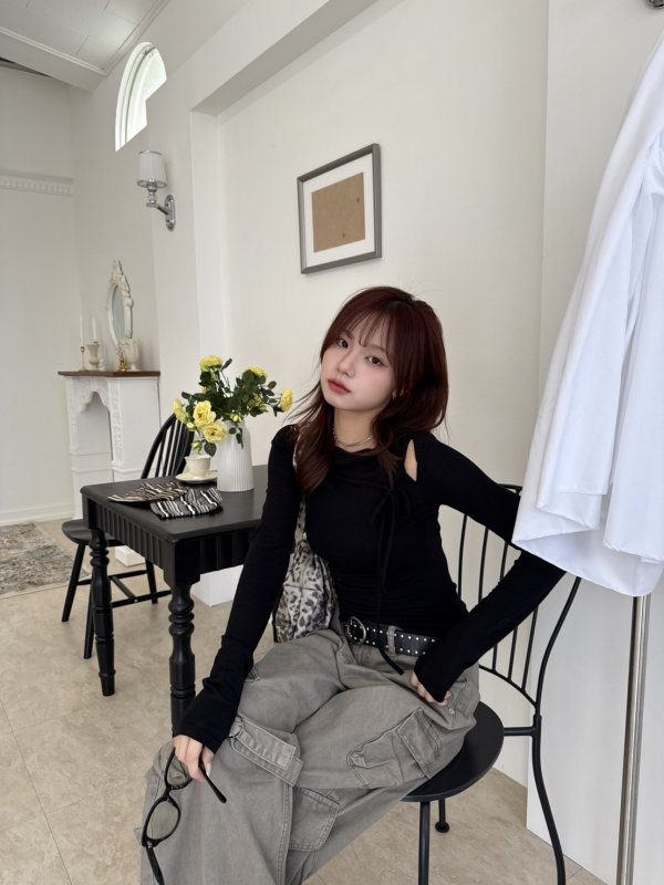 N06 四季歐膩彈力隨性綁帶棉tee 黑