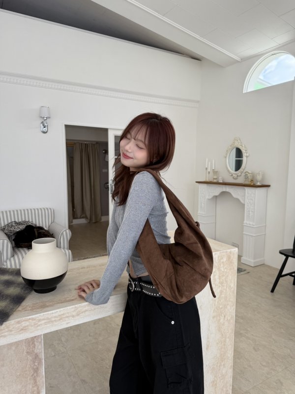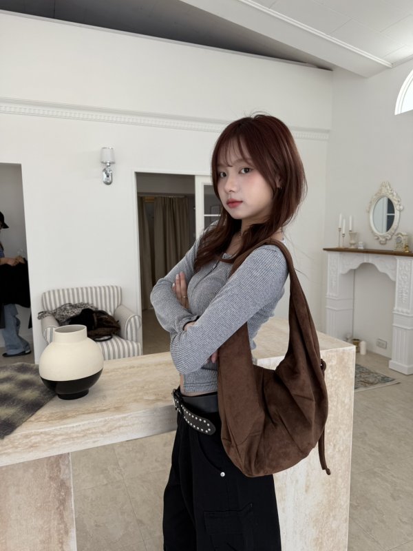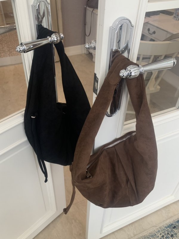 N07 本期命中款!麂皮雲感曲線月亮包 黑/咖