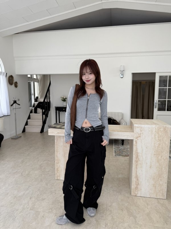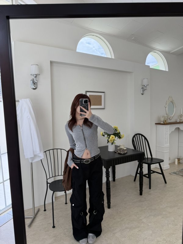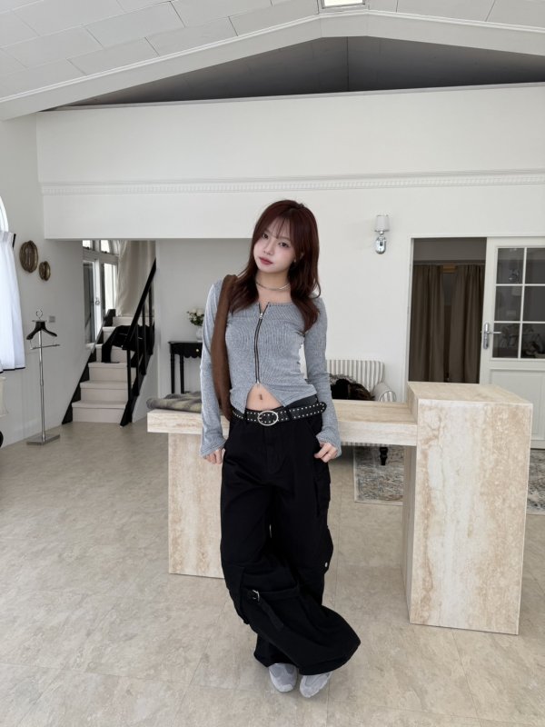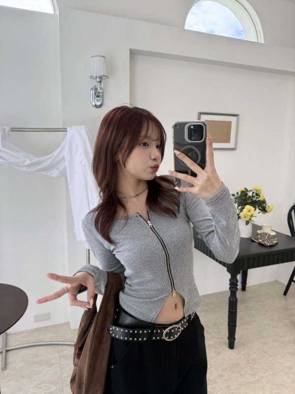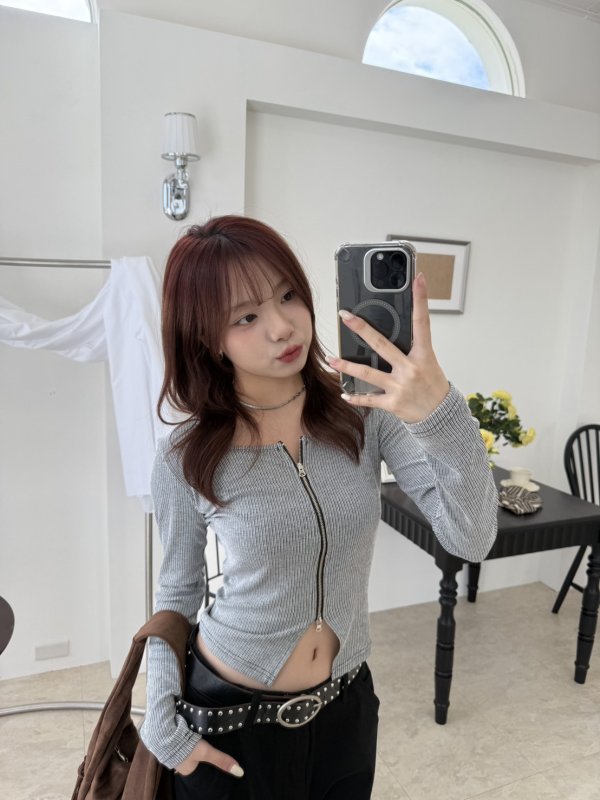 N10 New York 拼色薄款線條交錯拉鍊衫 灰