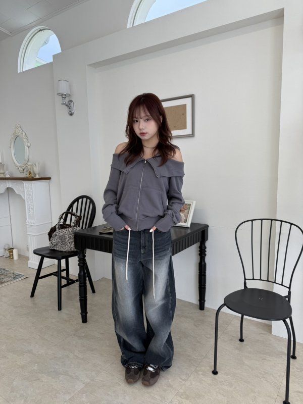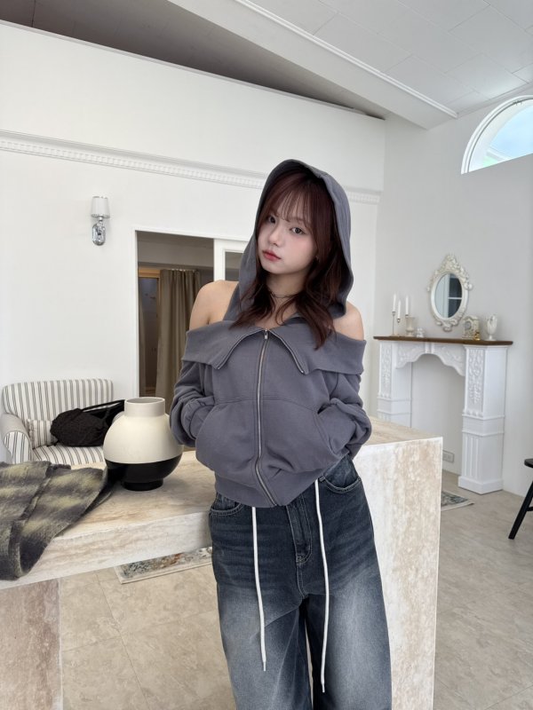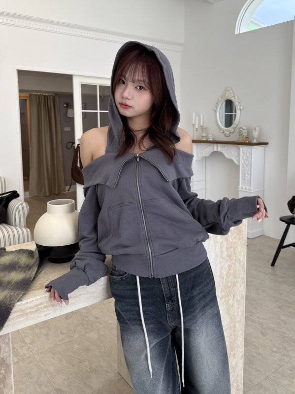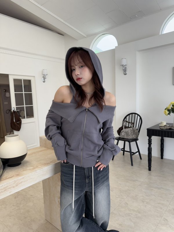 N12 本期命中款!鏡頭王一字領衛衣拉鍊大帽tee 深灰