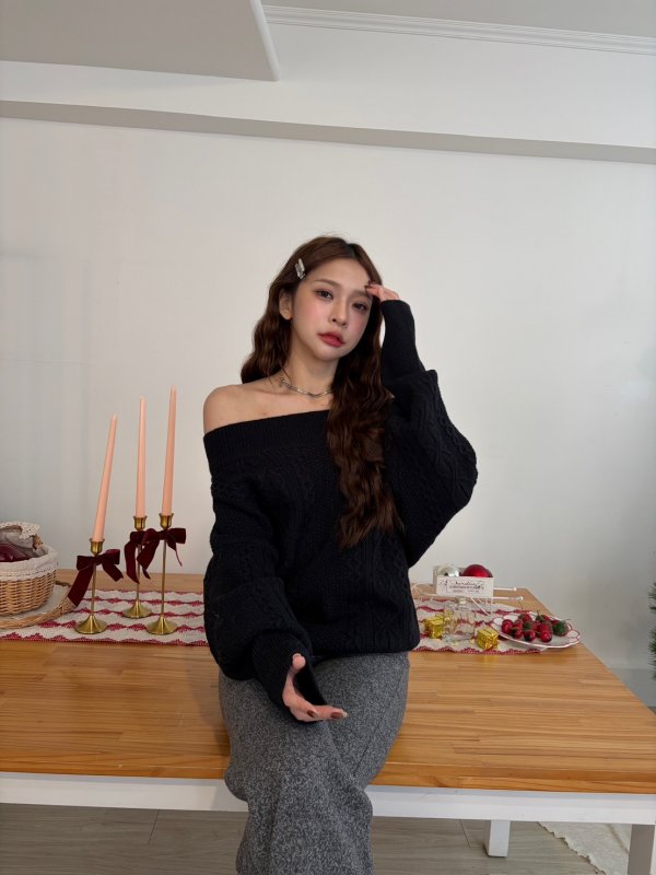 O36 本期命中款!贈圍巾寬鬆針織衫 燕麥