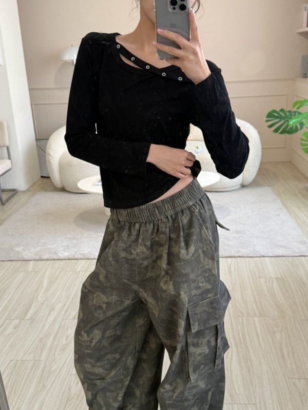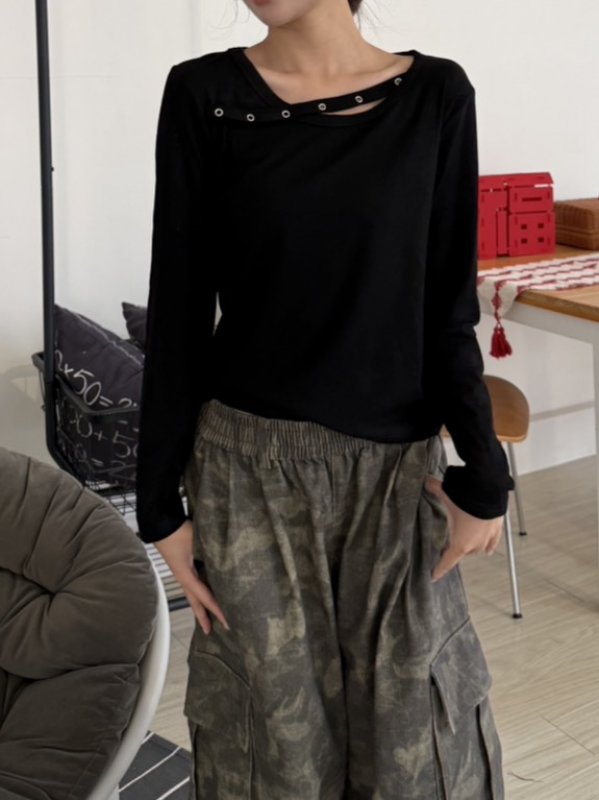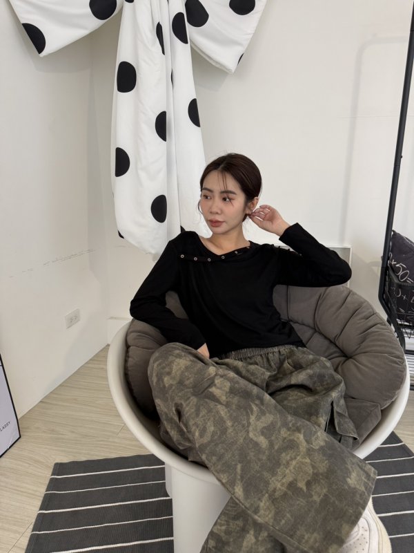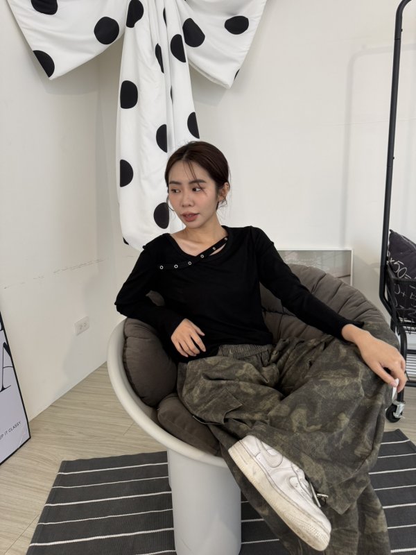 J06本期命中款!圓環斜帶設計棉T 黑色