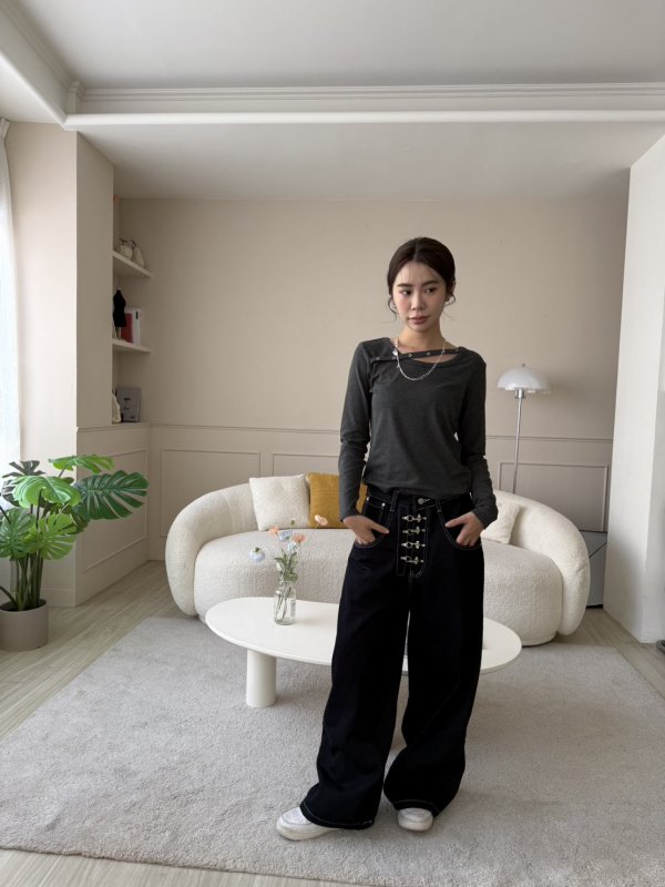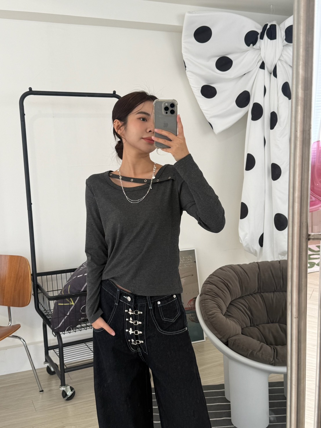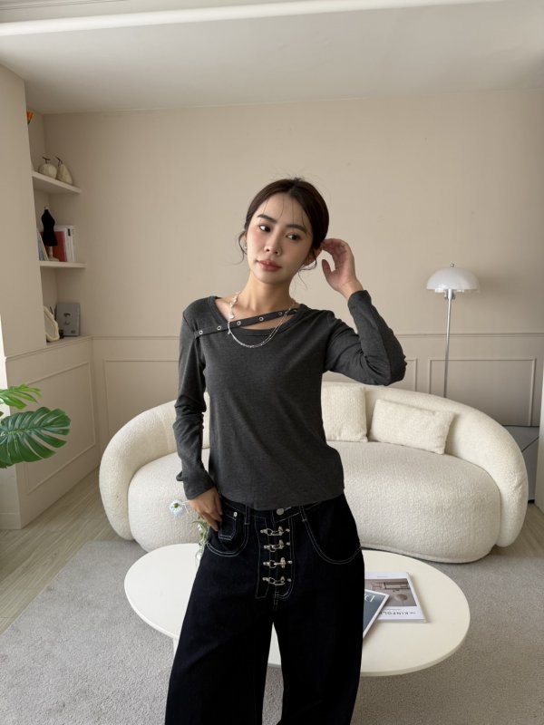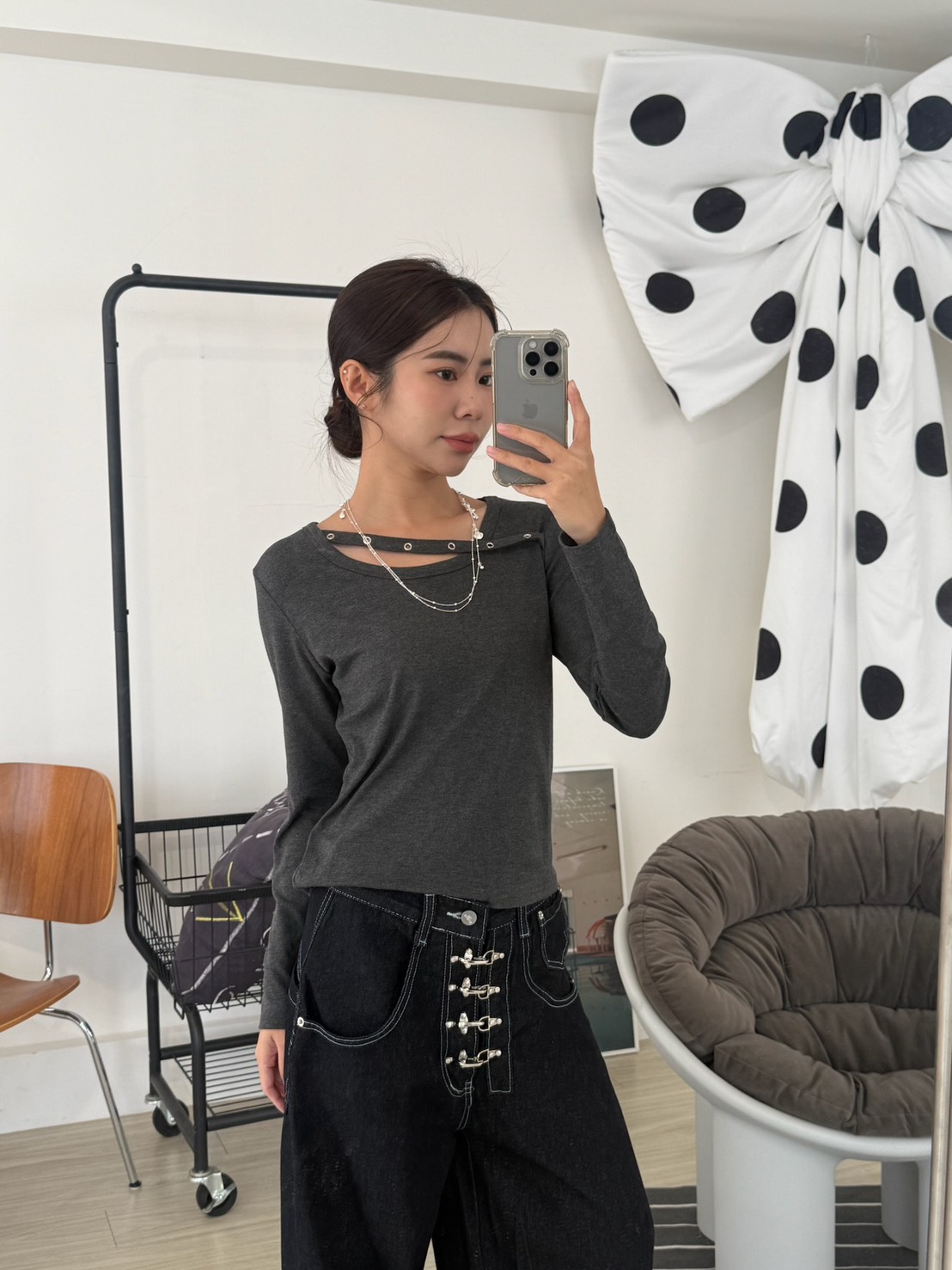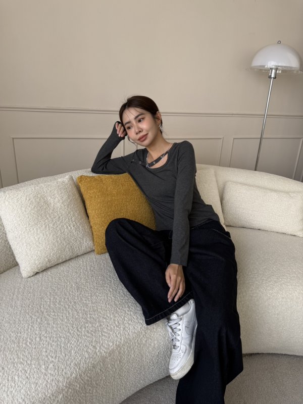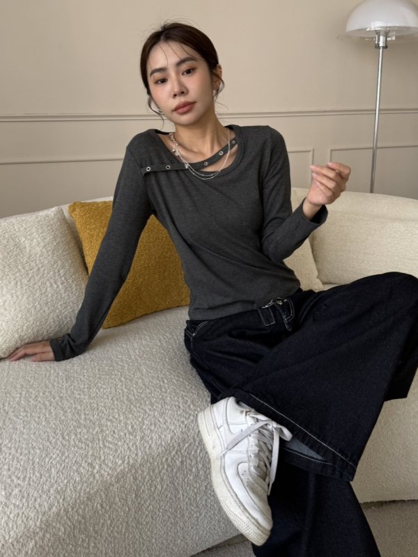 J06本期命中款!圓環斜帶設計棉T 深灰色