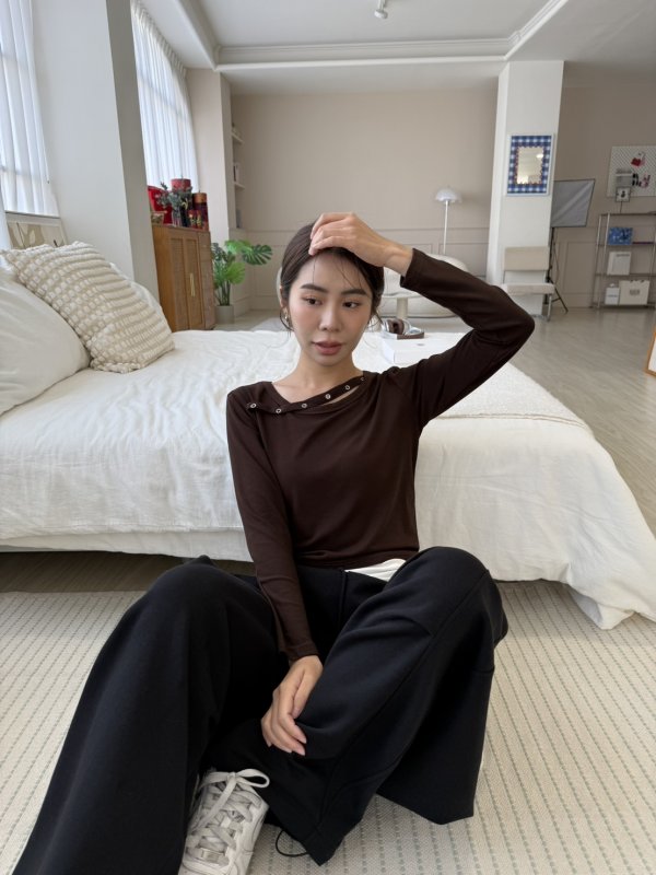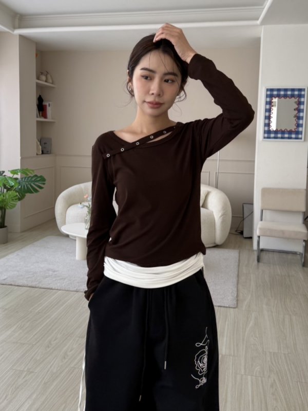 J06本期命中款!圓環斜帶設計棉T 咖色