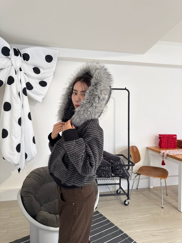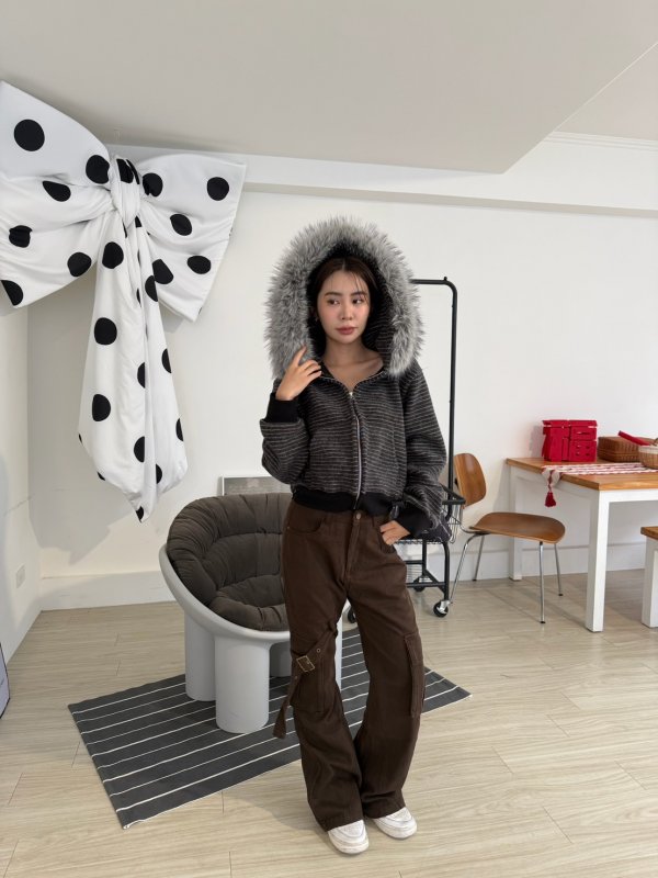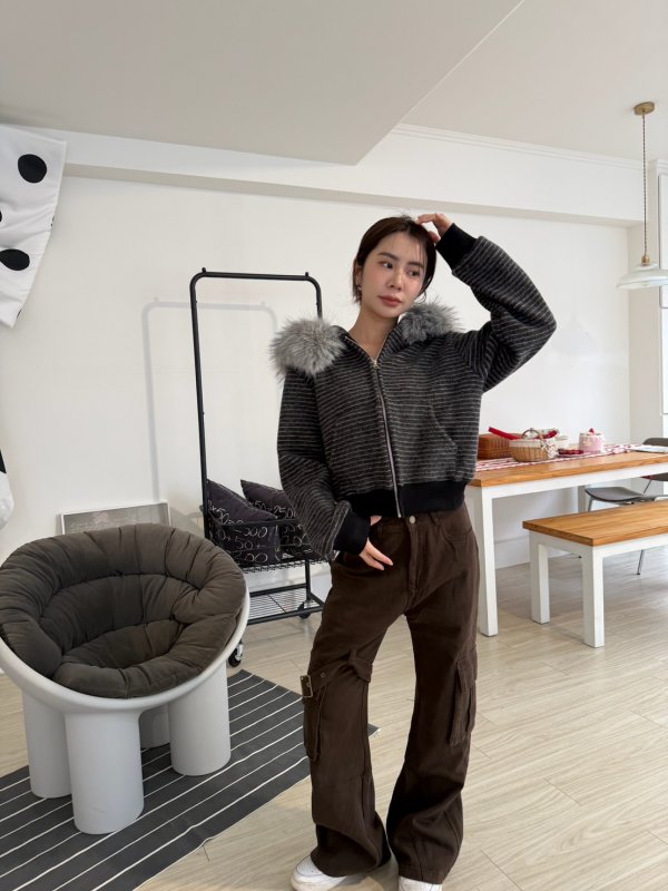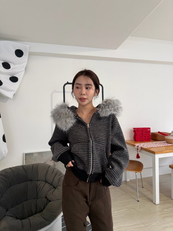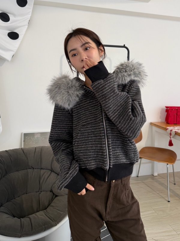 J11本期命中款!重磅厚實條紋連帽拉鍊外套 毛毛可拆