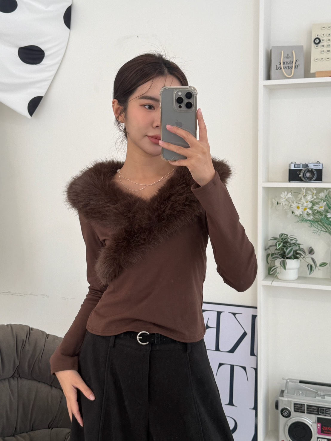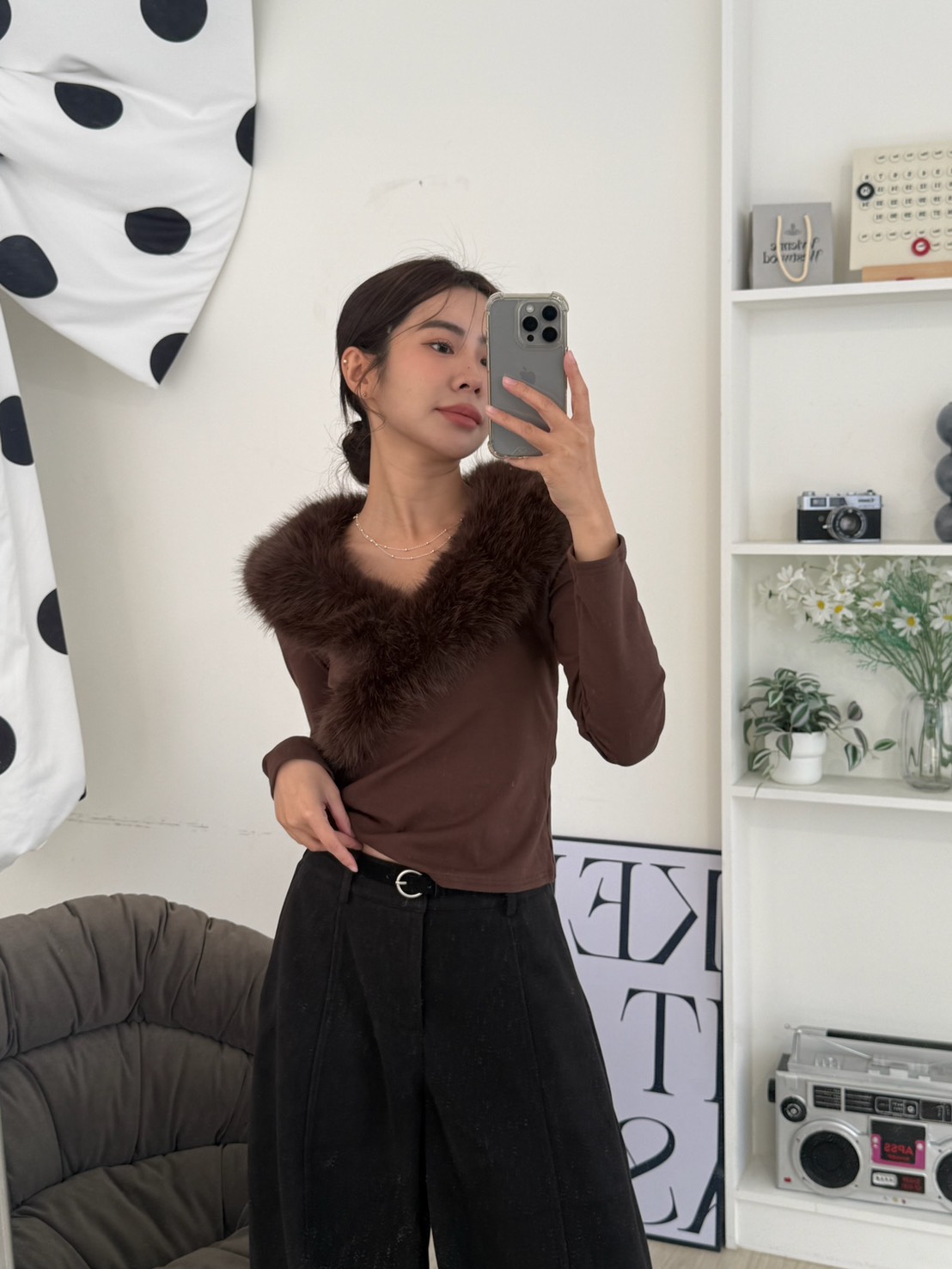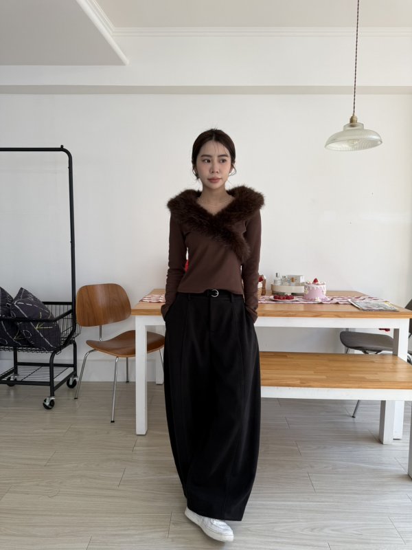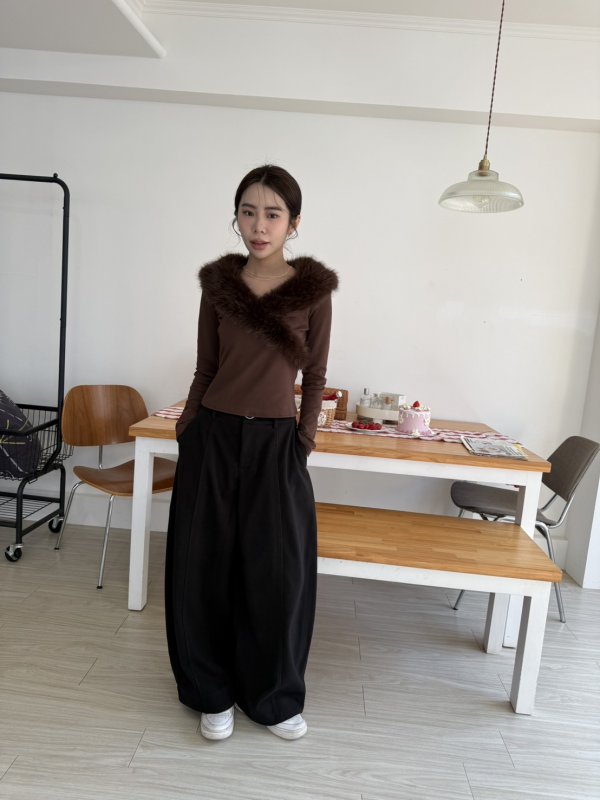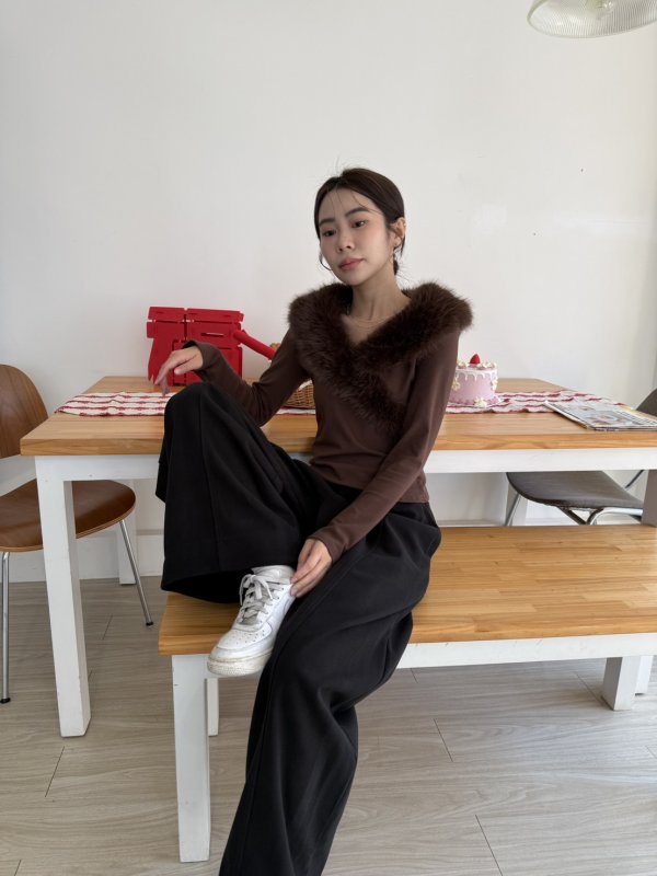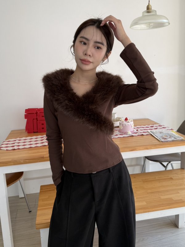 J16本期命中款!好命交叉毛毛設計棉T 咖色