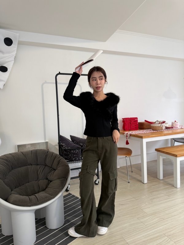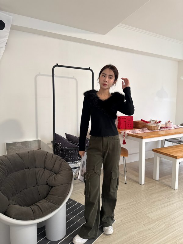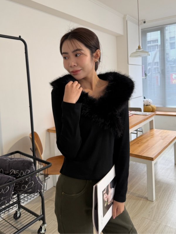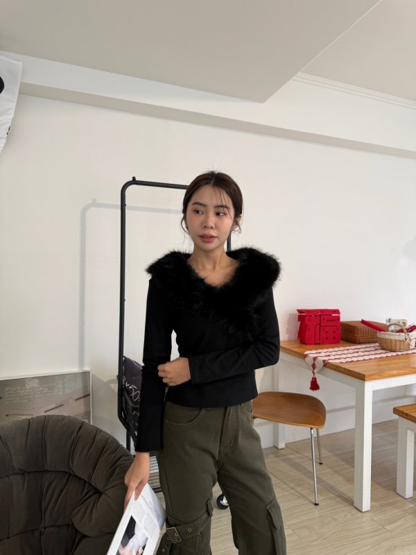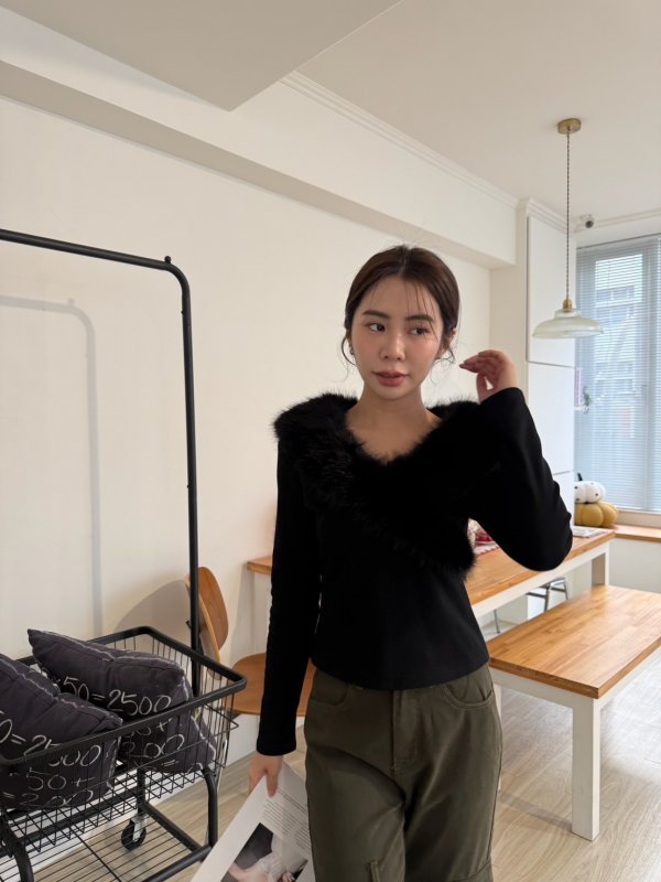 J16本期命中款!好命交叉毛毛設計棉T 黑色