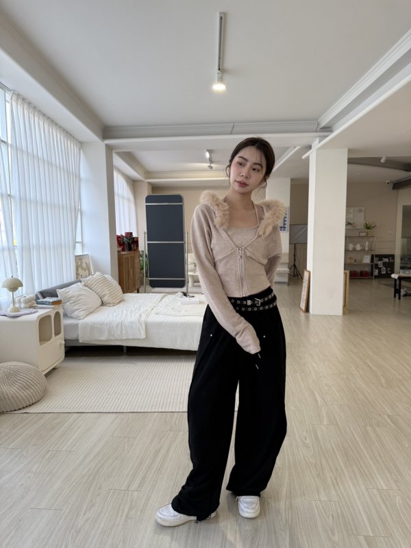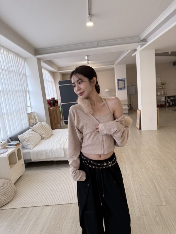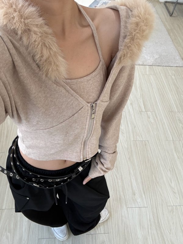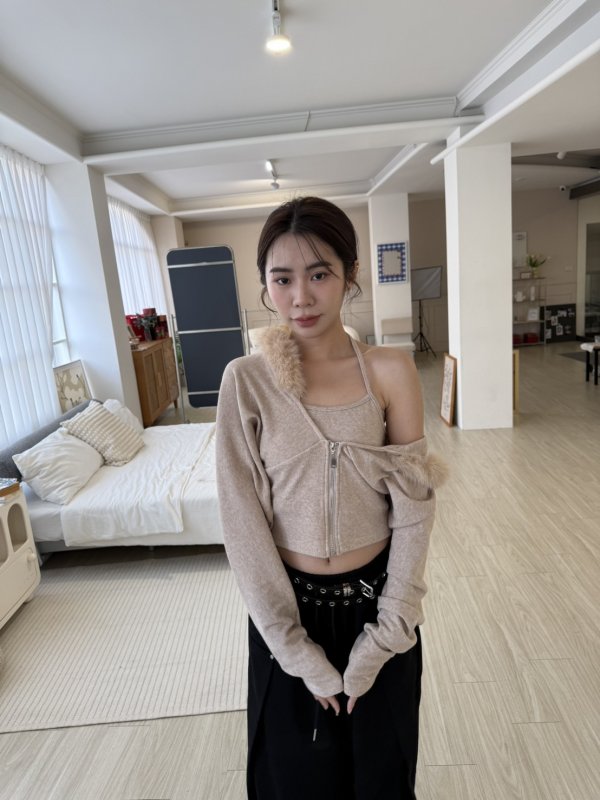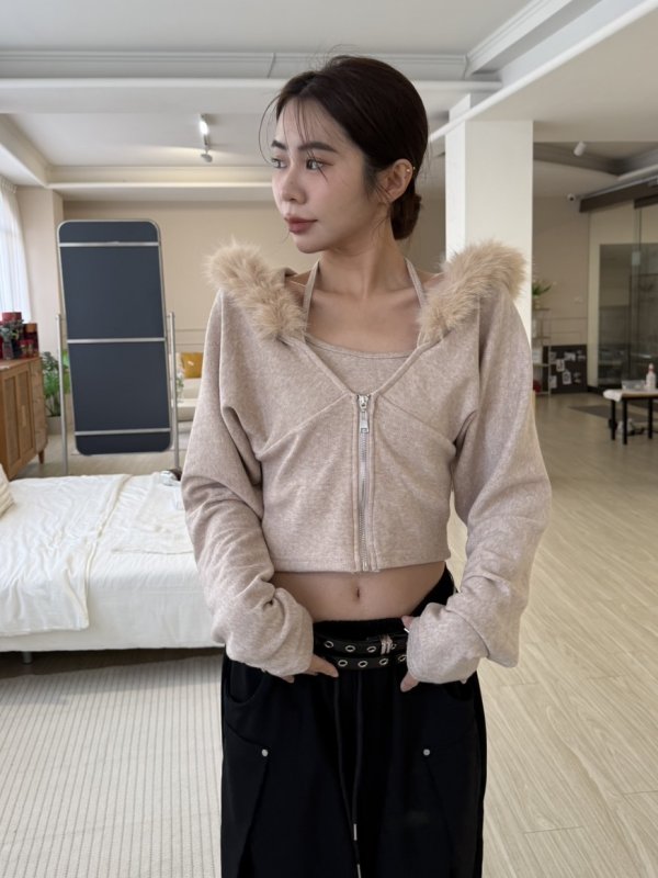 J18本期命中款!自留款兩件式毛毛縮腰棉外套+小背心 卡其色