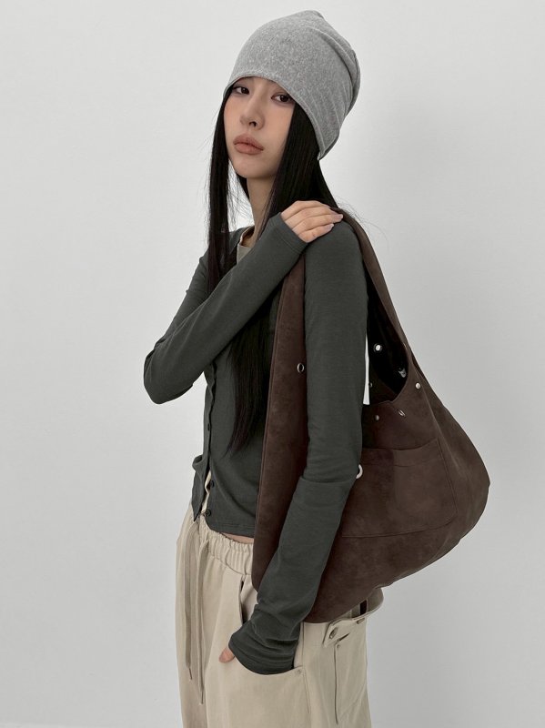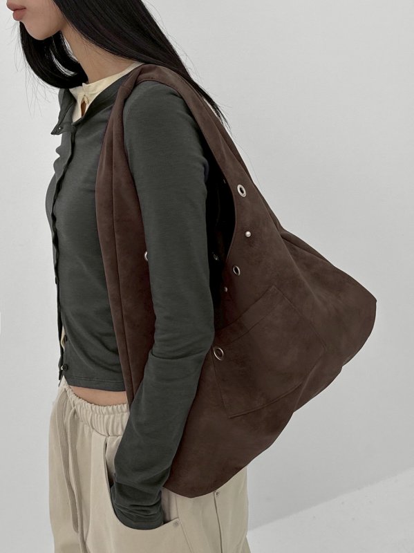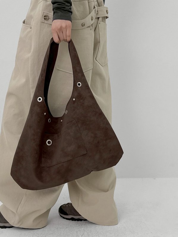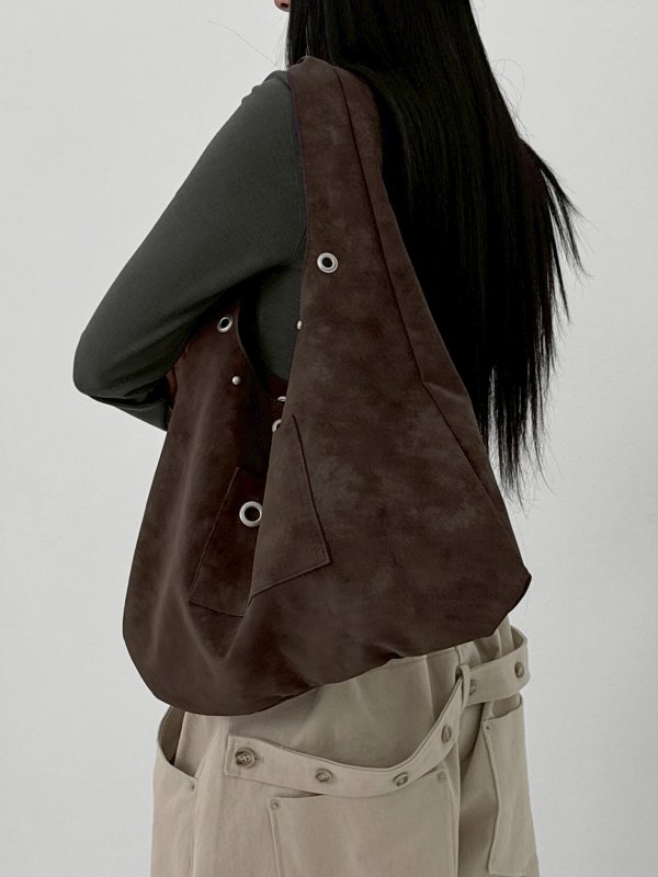 BLACKUP Terryte Eyelet 金屬孔皮革肩背包 咖/酒紅