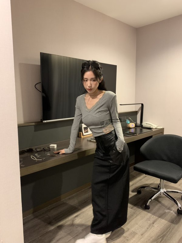 Oc47 蕾絲短版純慾棉tee 灰