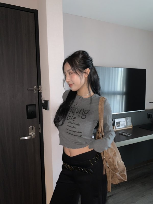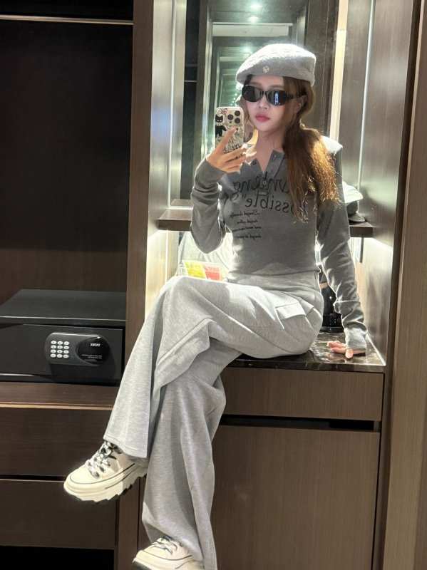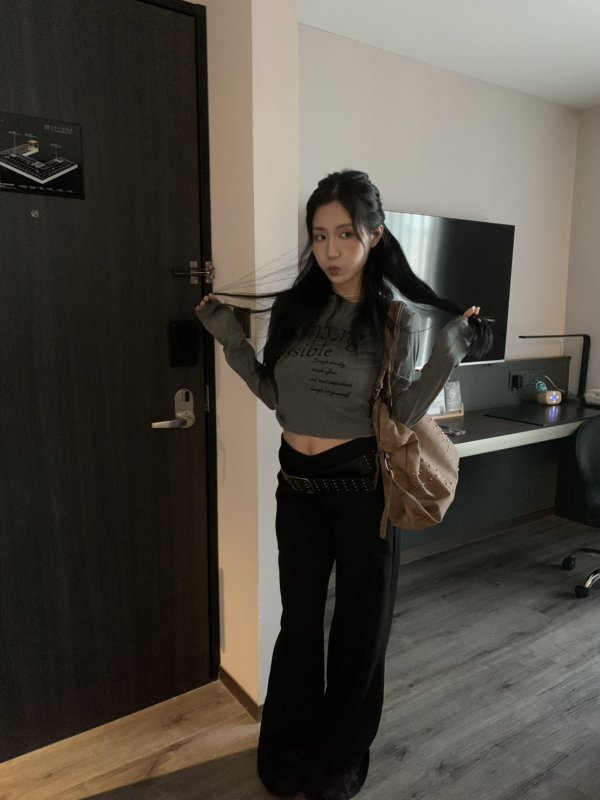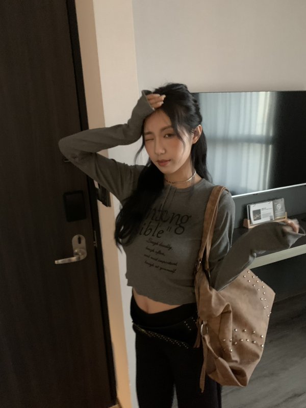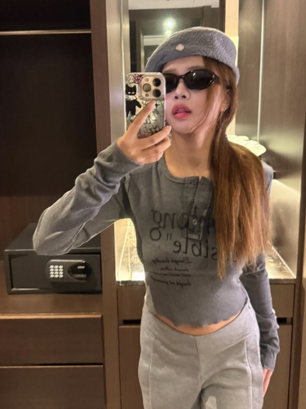 Oc50 本期命中款!做舊字母v領排扣彈力墊肩酷tee 灰