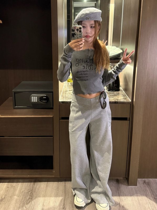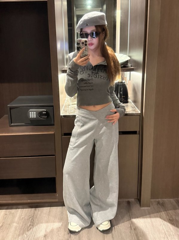 Oc49 後鬆緊寬鬆卡其工裝褲