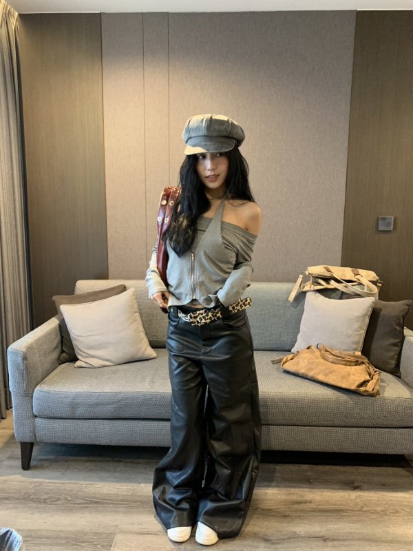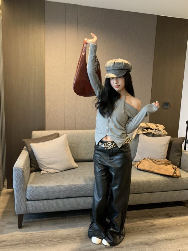 Oc51 滿版豹紋廠商自訂款寬鬆牛仔褲 灰
