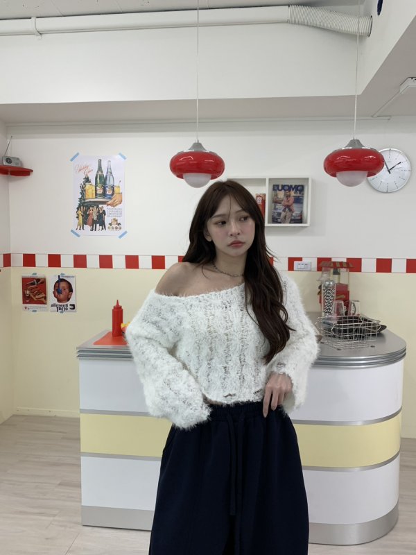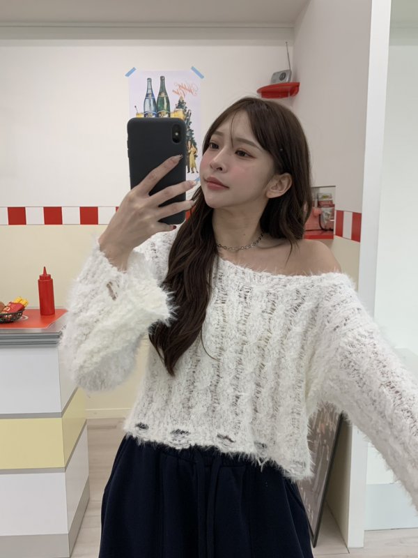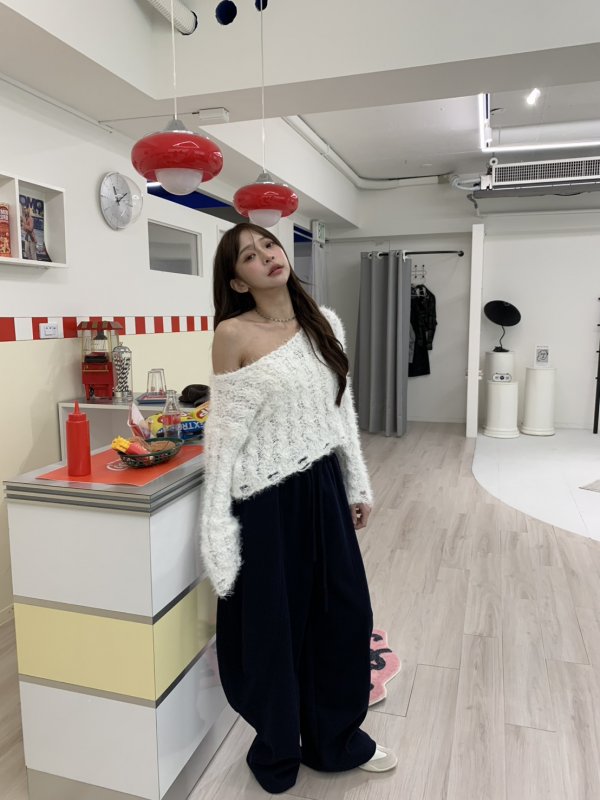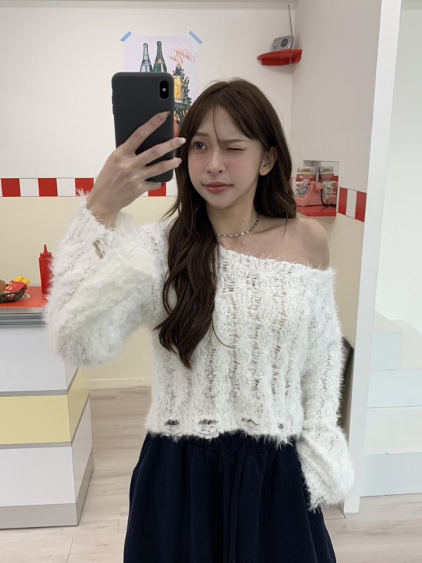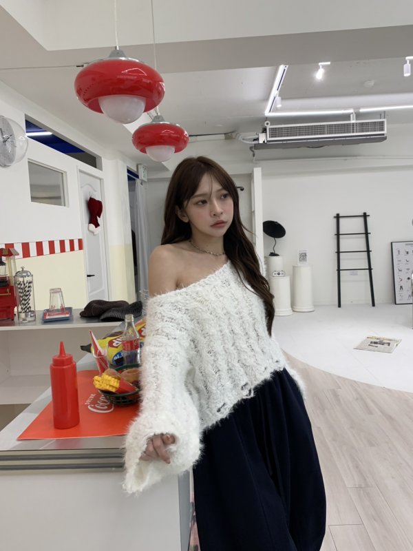 V16 本期命中款!編織抽鬚斜肩軟糯毛衣
