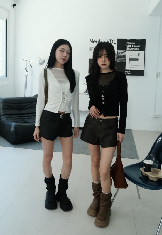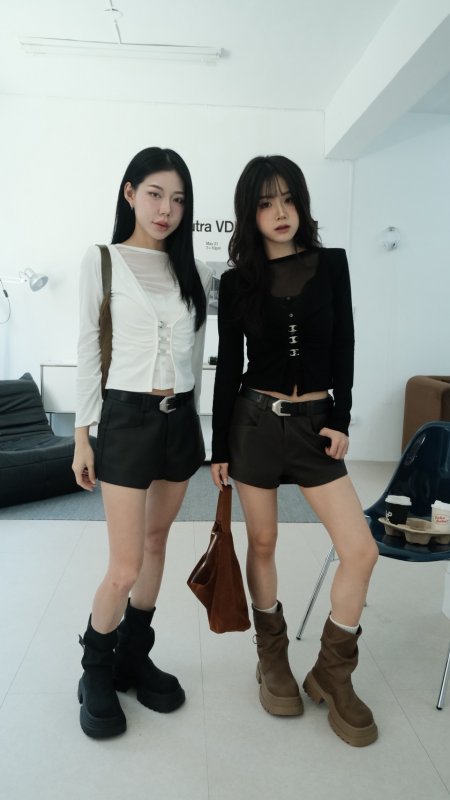 N40 本期命中款!霧夜時髦皮革優版型皮短褲(贈皮帶)黑