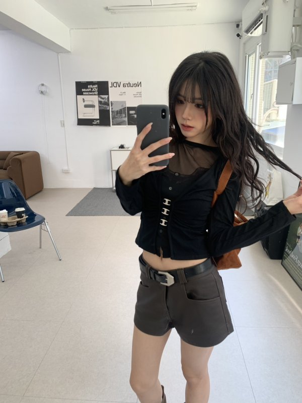 N41 本期命中款!千金優雅金屬釦網紗棉tee 白