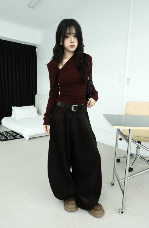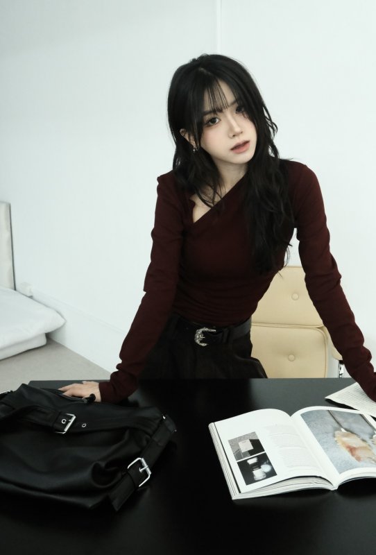 N44 本期命中款!冬日辣妹內刷毛斜切棉tee 紅
