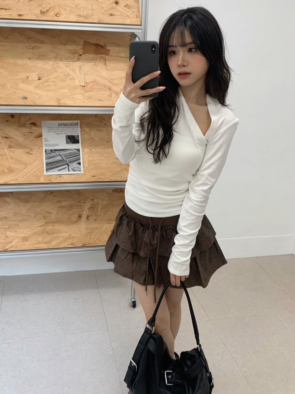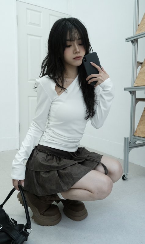 N44 本期命中款!冬日辣妹內刷毛斜切棉tee 白