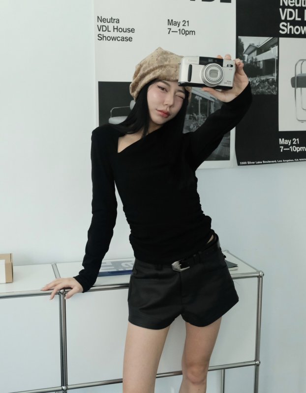 N70 渲染霧面皮革鬆緊蛋糕裙 黑