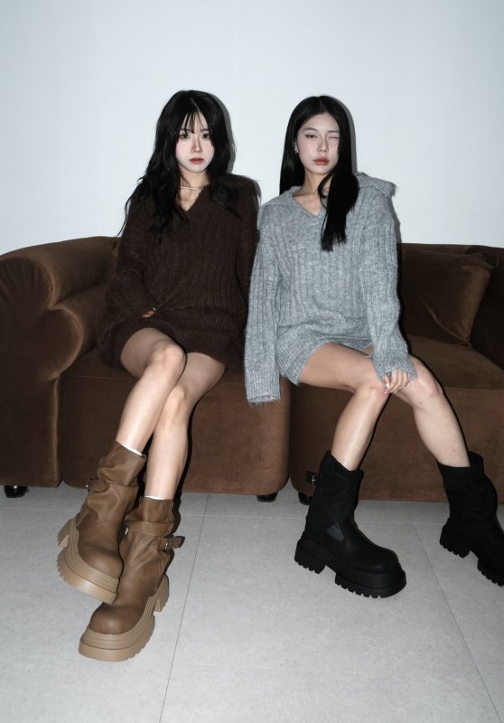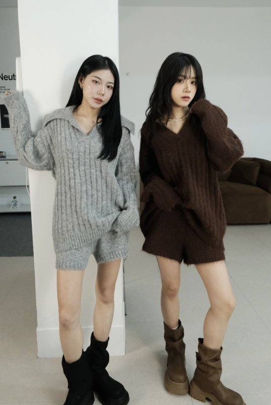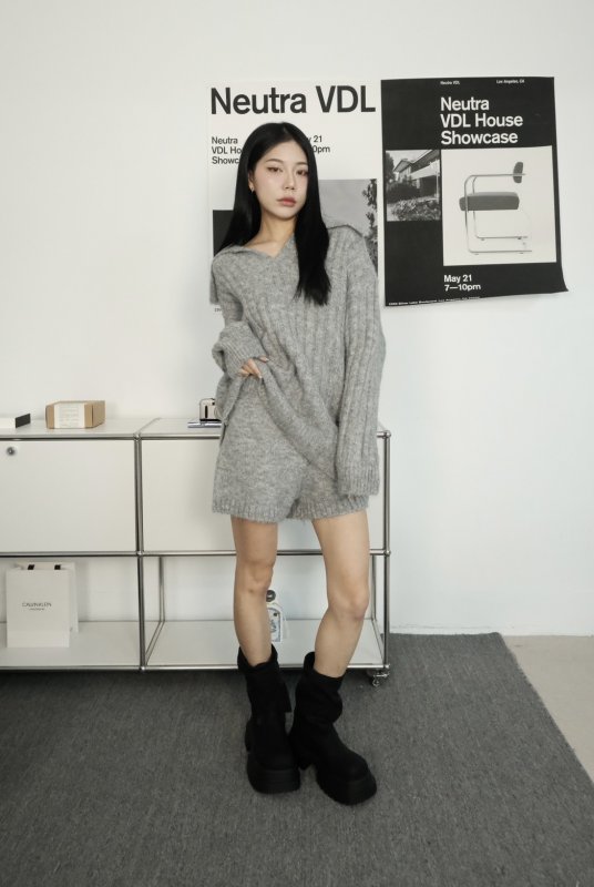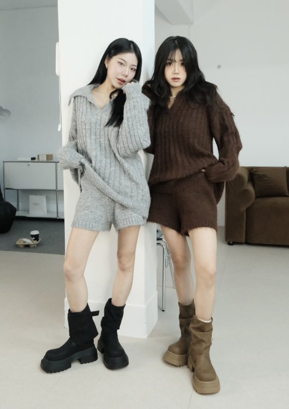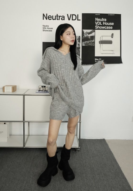 N52 本期命中款!柔霧絨雲polo領寬鬆針織set 灰