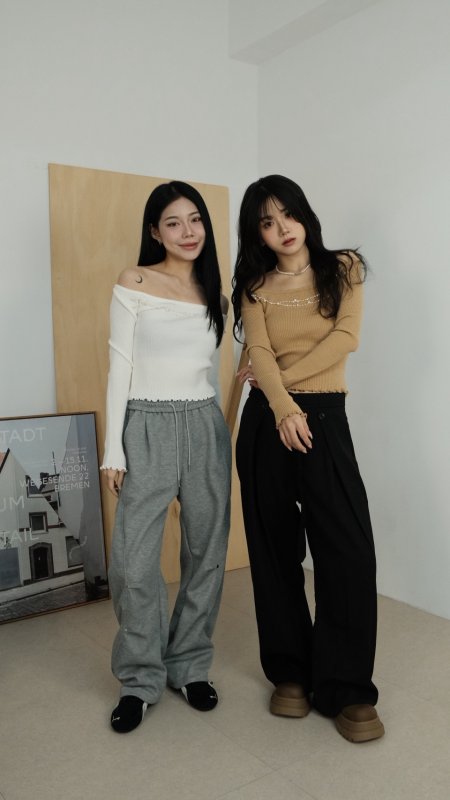 N57 廓形鬆緊設計亮眼棉褲 黑