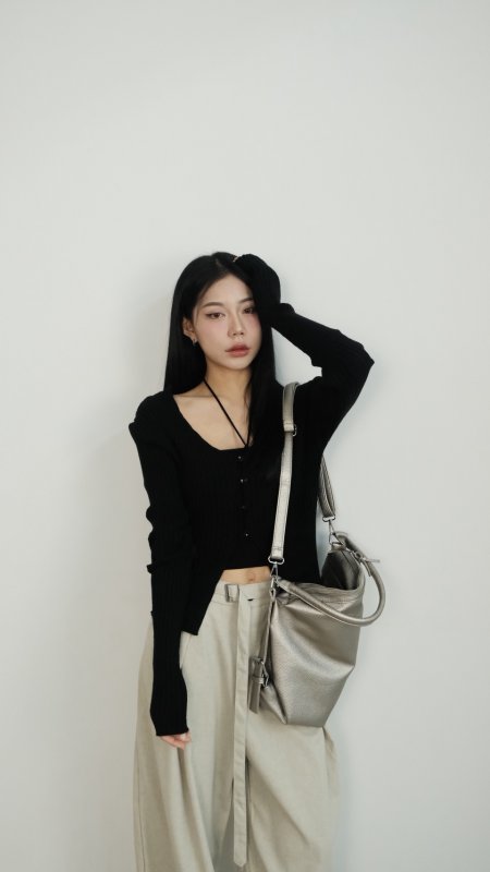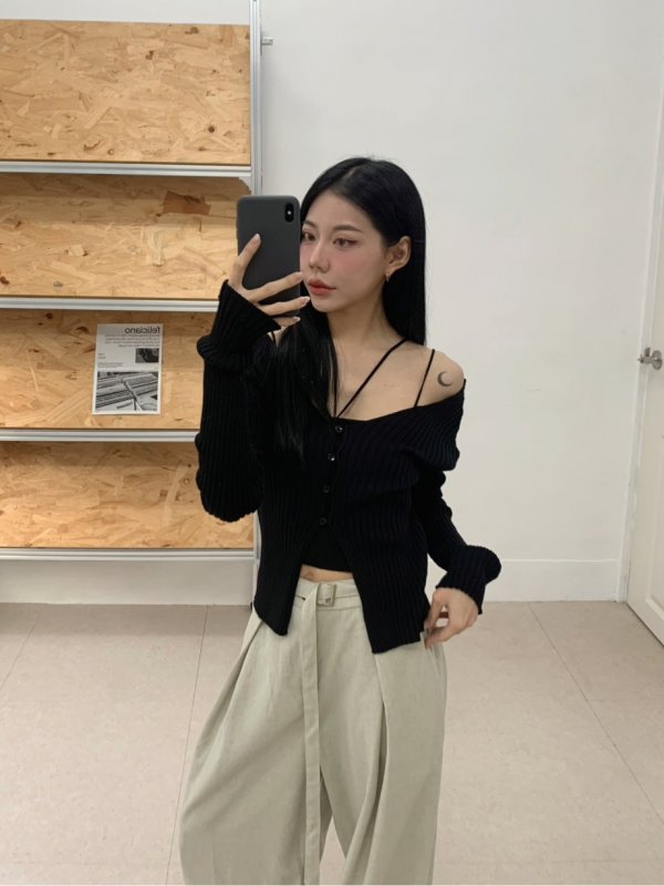 N69 本期命中款!針織坑紋兩件式排扣set 黑