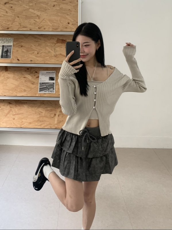 N69 本期命中款!針織坑紋兩件式排扣set 卡其