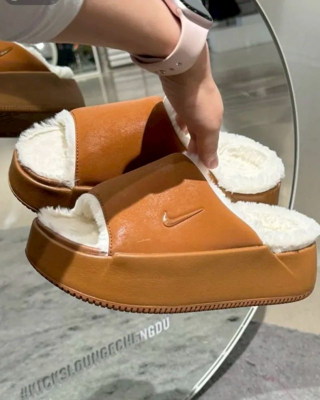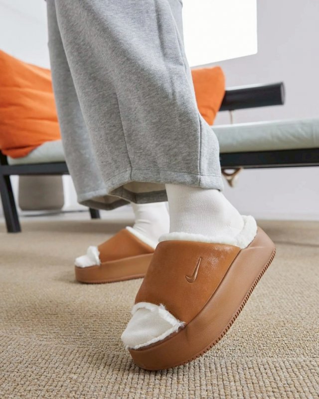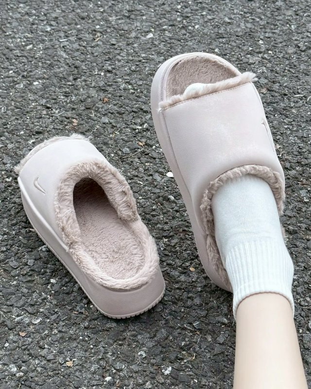 Nike Calm Elevation Fur 厚底毛毛拖 粉紅/焦糖/黑
