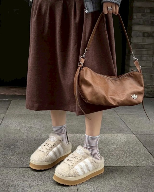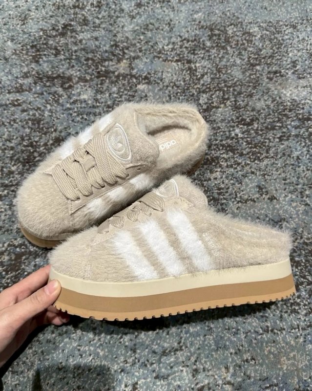 Adidas Originals Campus 00s Winter Row 毛毛拖穆勒鞋 奶茶棕