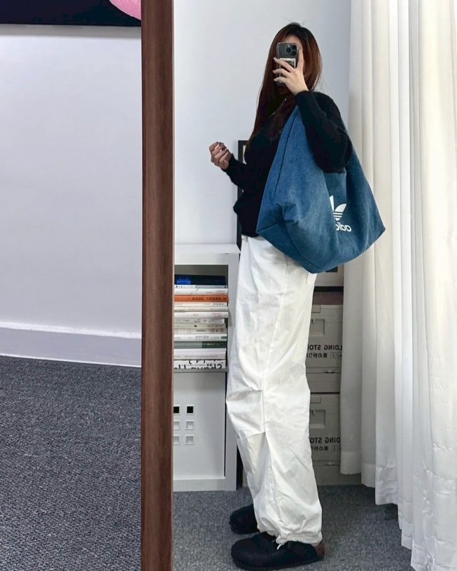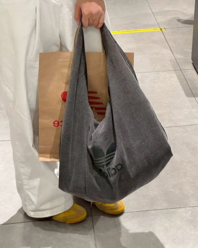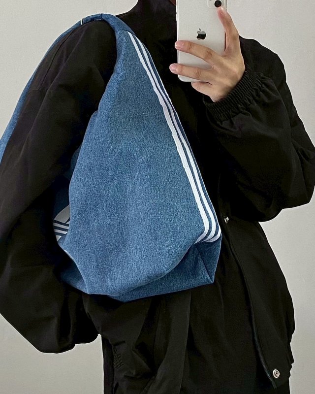 Adidas Originals 蓬鬆牛仔托特包 肩背包 牛仔藍/黑