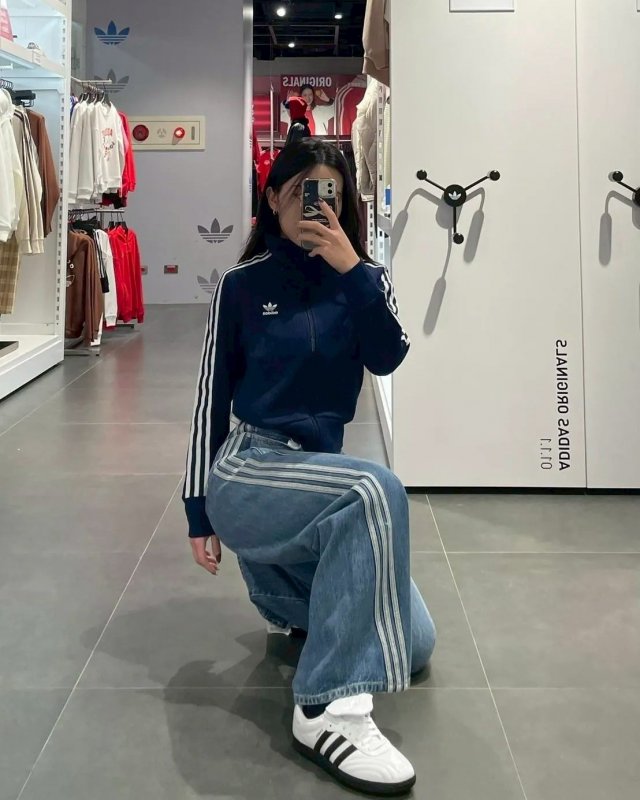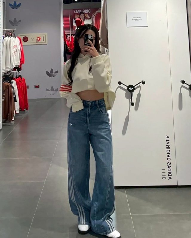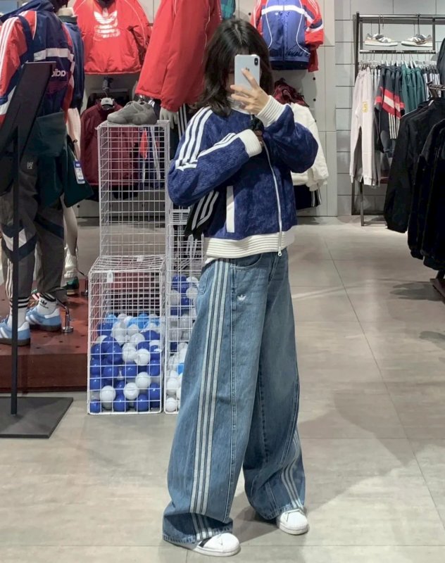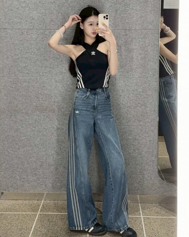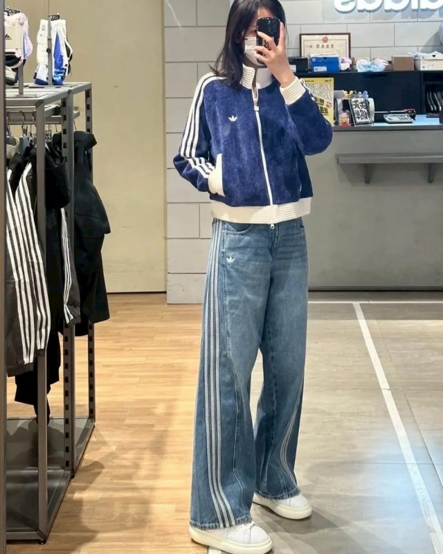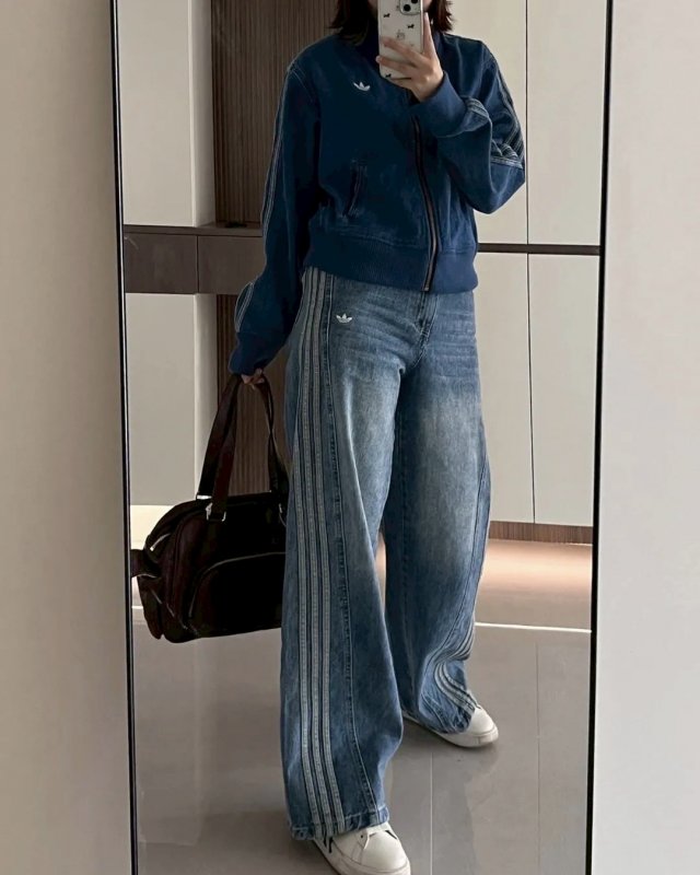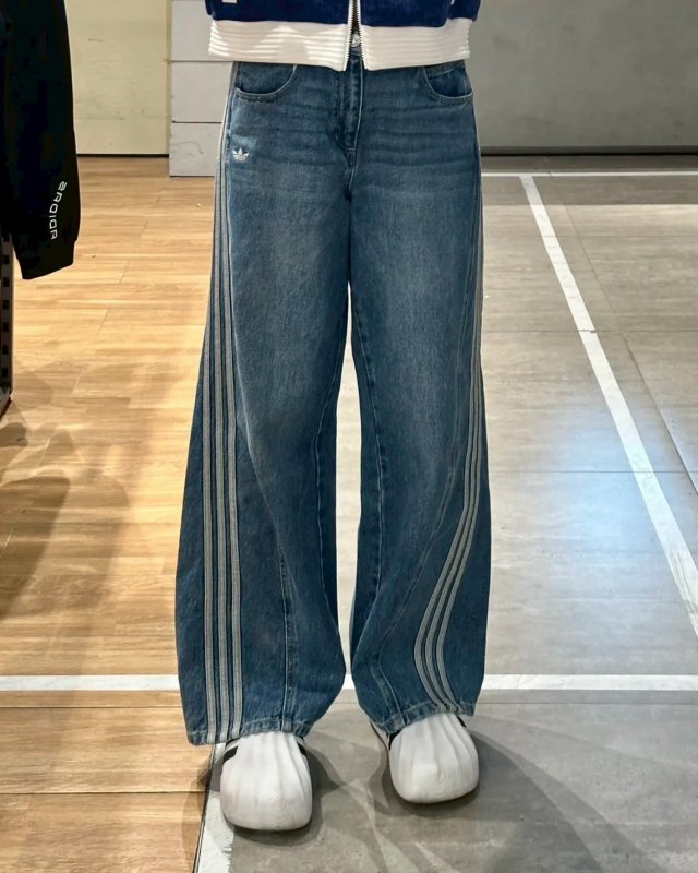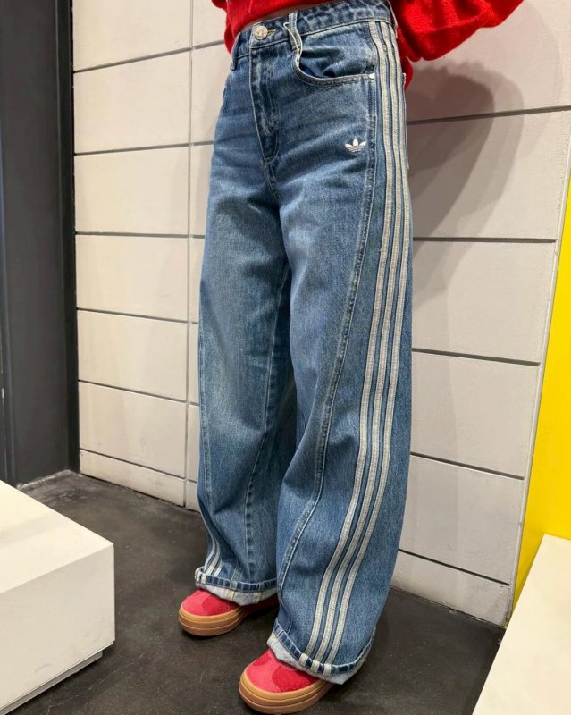 <現貨速出> Adidas originals 落地寬褲牛仔褲 宋雨琦同款 藍