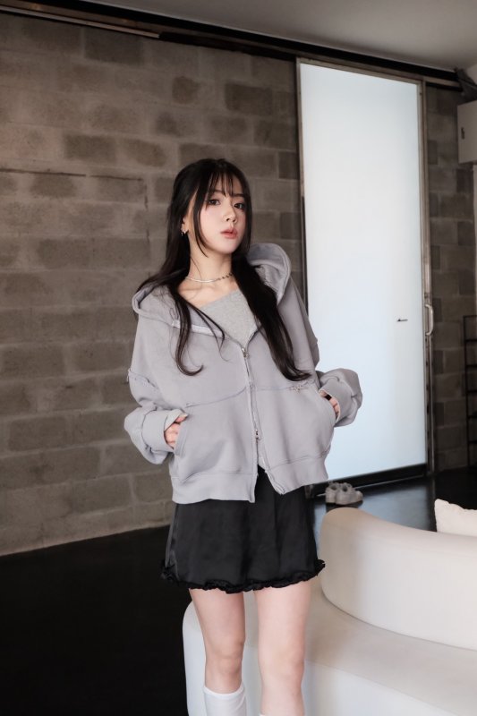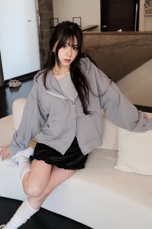 M19 本期命中款! 一見鍾情異材質設計一字領 灰