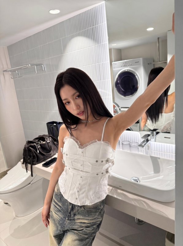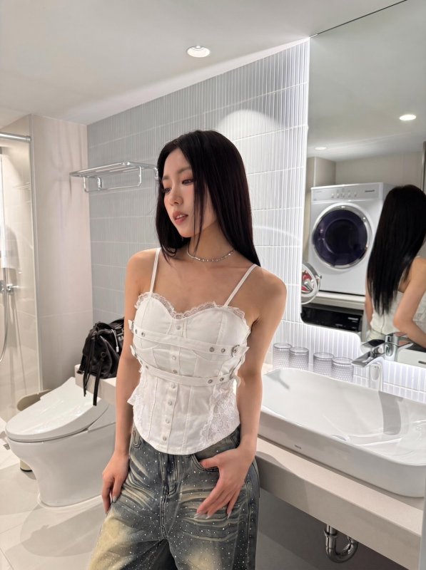 A89 排扣緞帶2件式胸墊韓妞短T 白