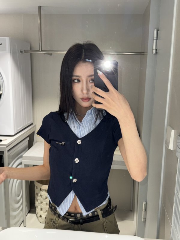 滿$4500贈送-夏日斜拉鏈辣妹薄tee