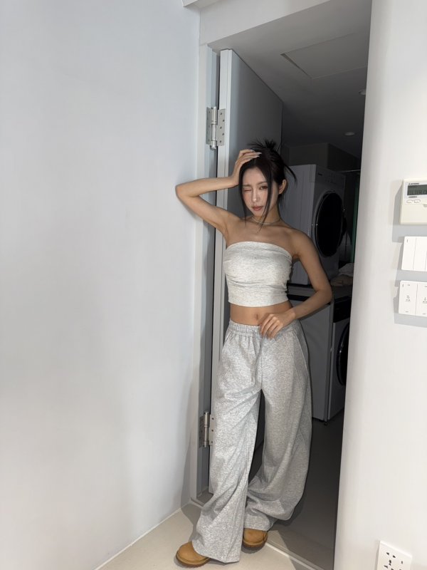 A74 本期命中款! 鑽鑽平口辣妹胸墊背心 淺灰