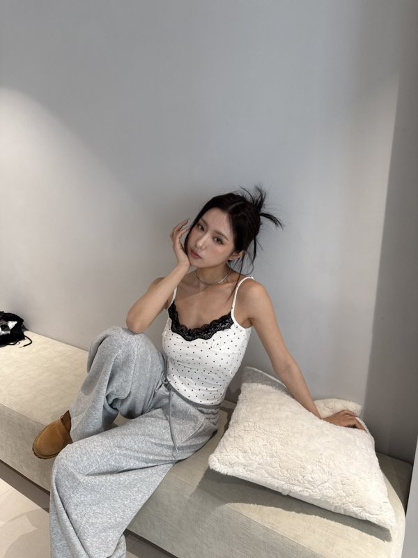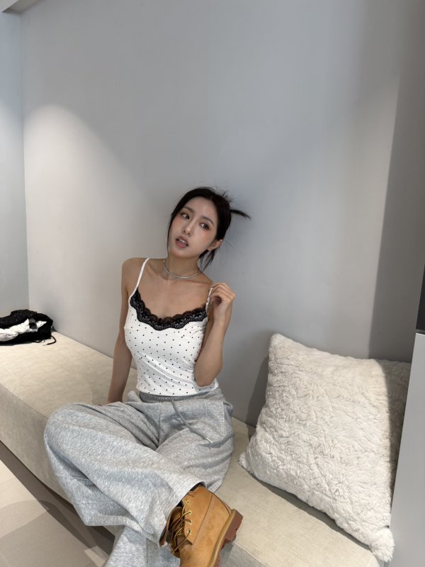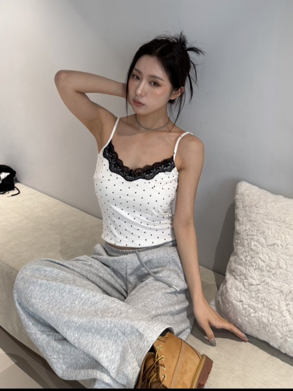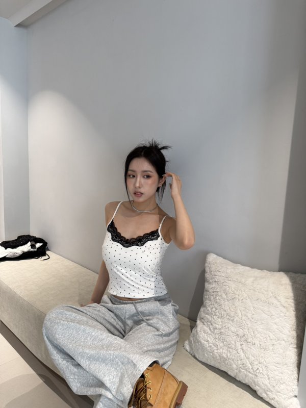 A75 本期命中款! 波點蕾絲氣墊胸墊彈力背心 白