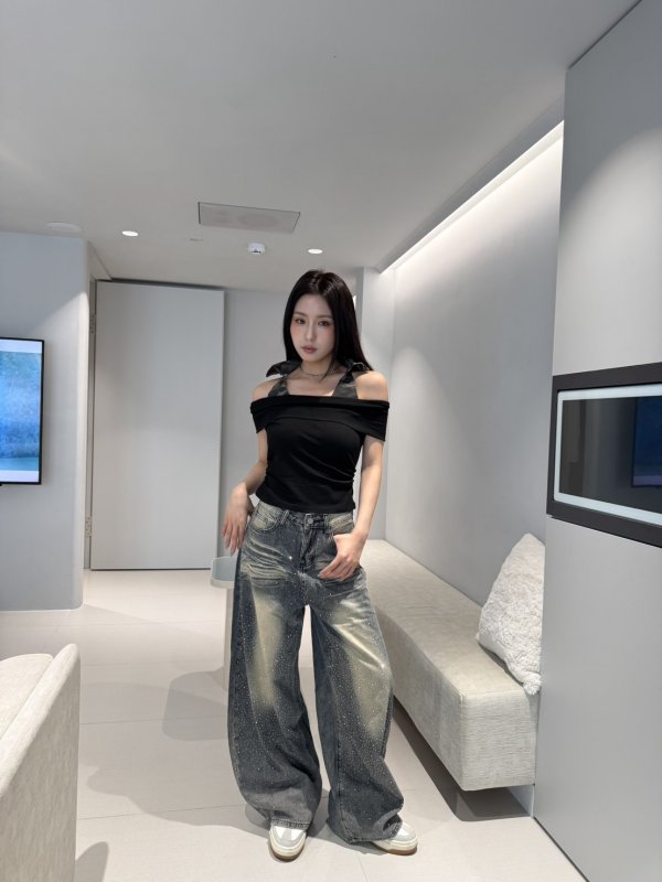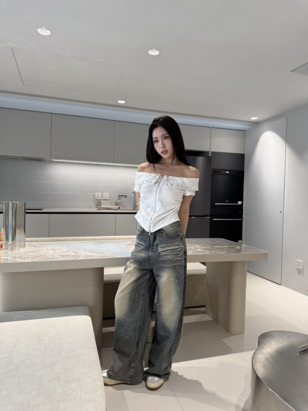 A79 本期命中款! 一眼命中鑽鑽復古刷色彎刀牛仔褲 深灰藍