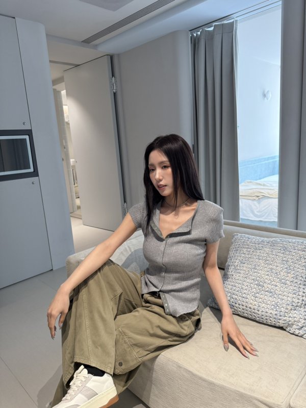 滿$4500贈送-夏日斜拉鏈辣妹薄tee