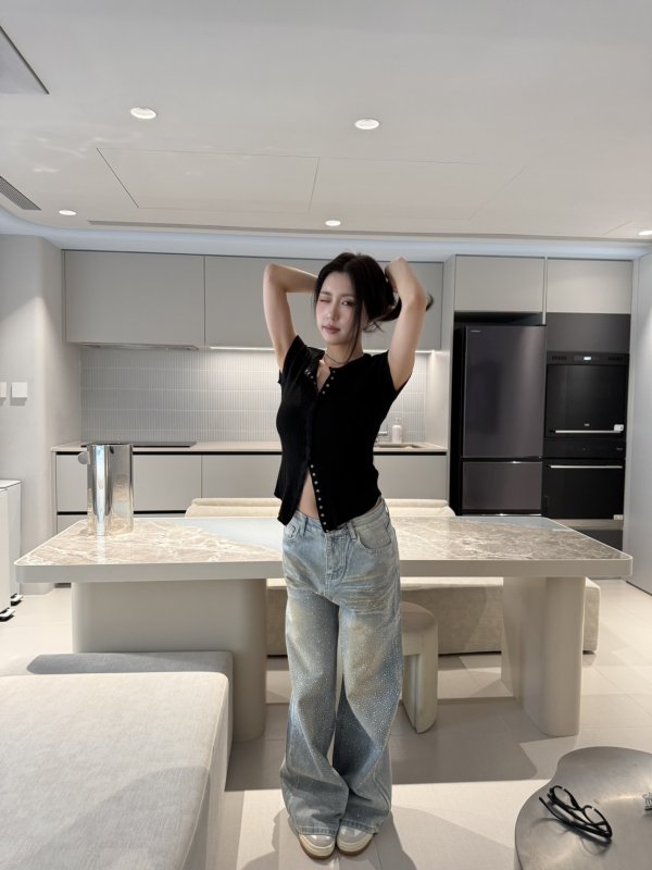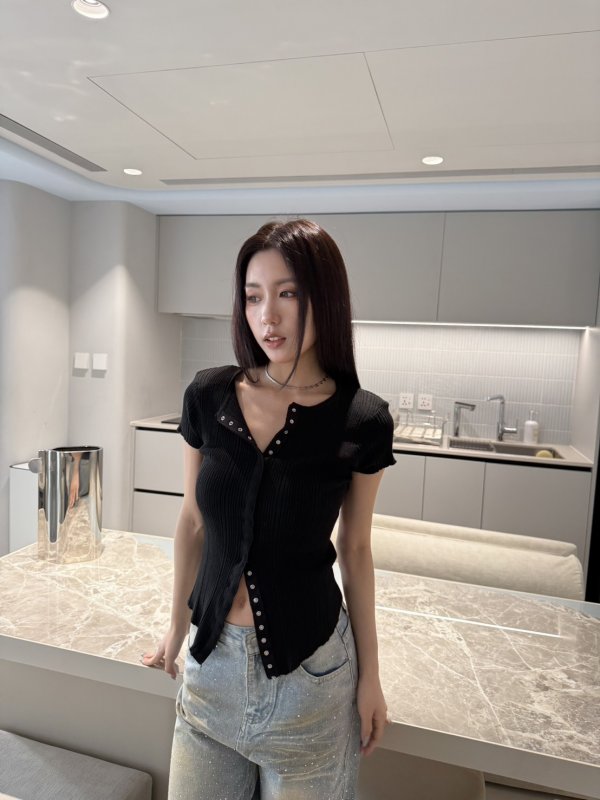 A80 本期命中款! 夏日透視超彈力坑紋薄T 黑