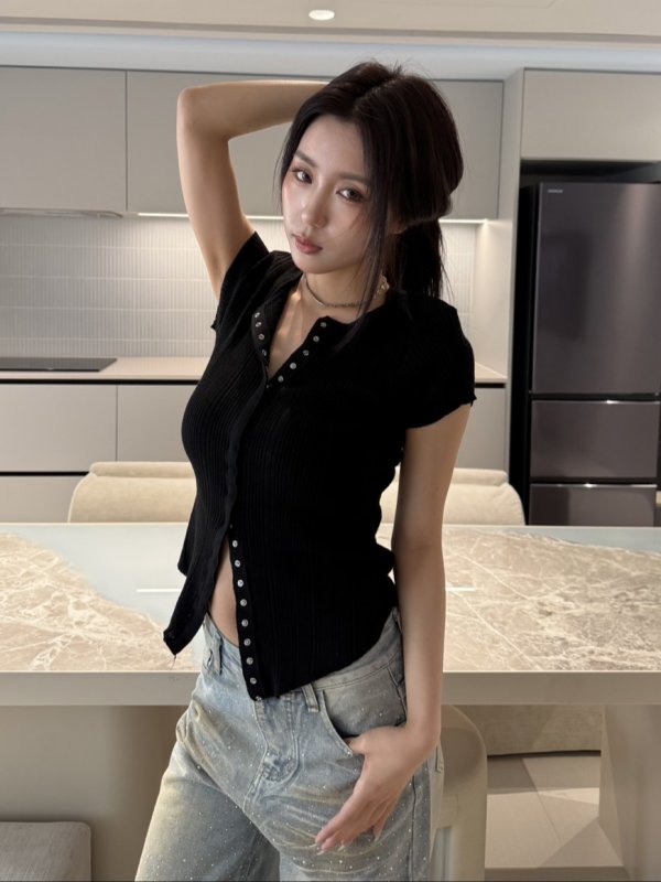 滿$4500贈送-夏日斜拉鏈辣妹薄tee