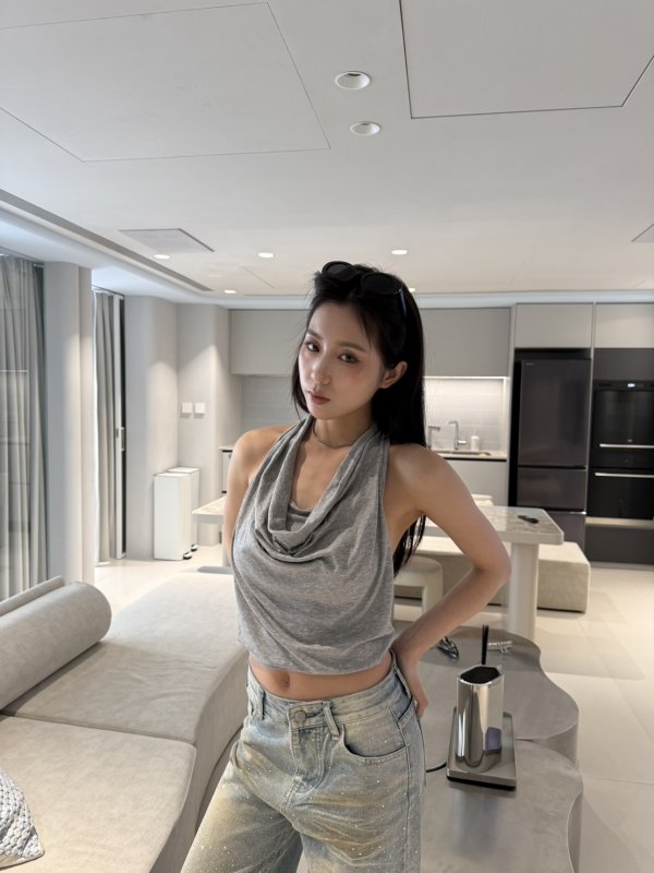 A84 本期命中款! 冷感垂墜領口繞脖氣墊胸墊兩穿背心 灰