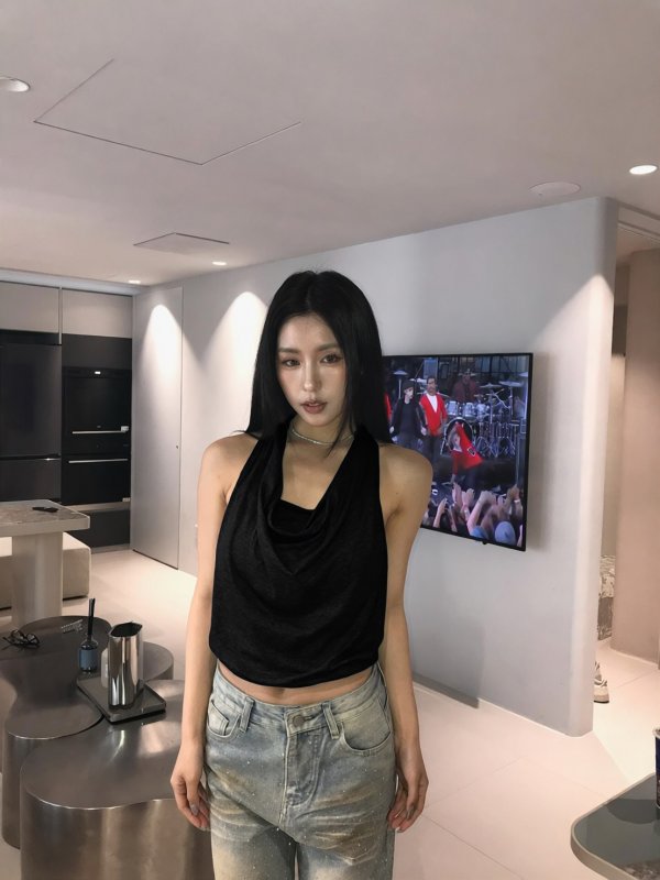 A84 本期命中款! 冷感垂墜領口繞脖氣墊胸墊兩穿背心 黑
