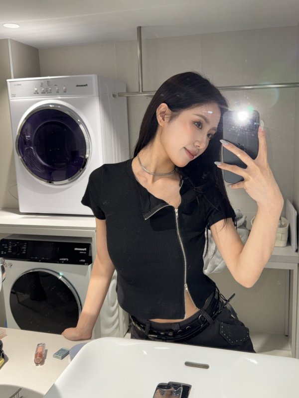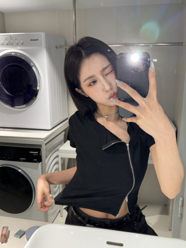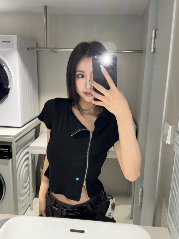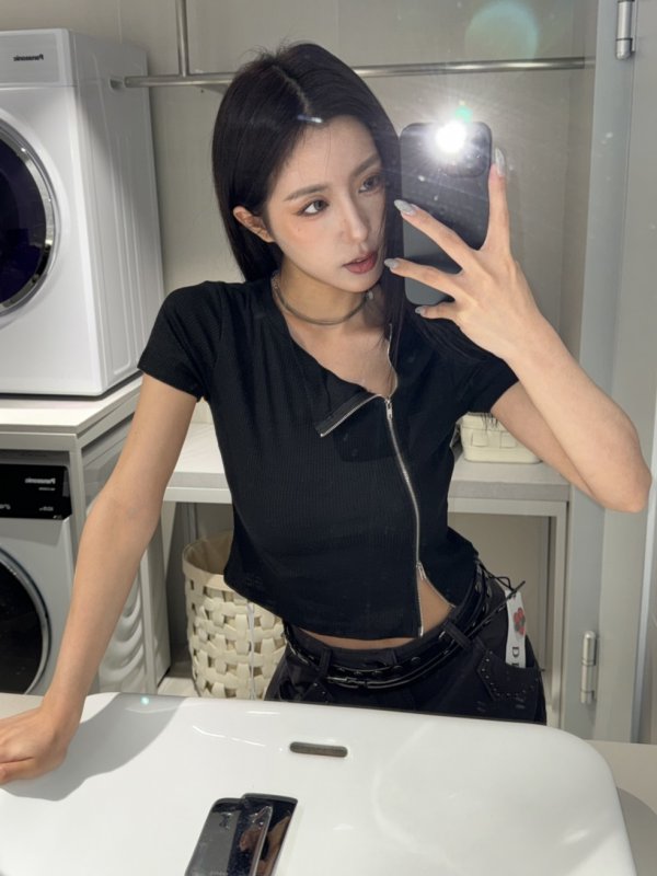 A85 日常簡約斜拉鏈輕薄短T 黑