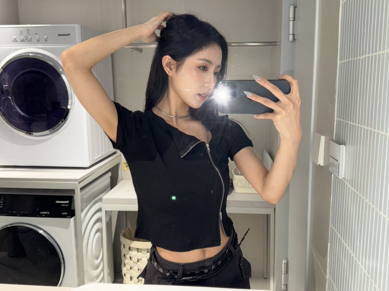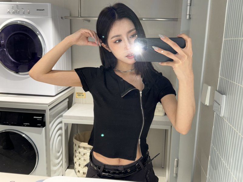 滿$4500贈送-夏日斜拉鏈辣妹薄tee