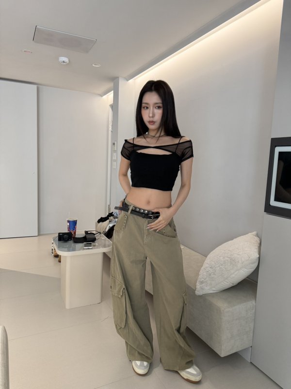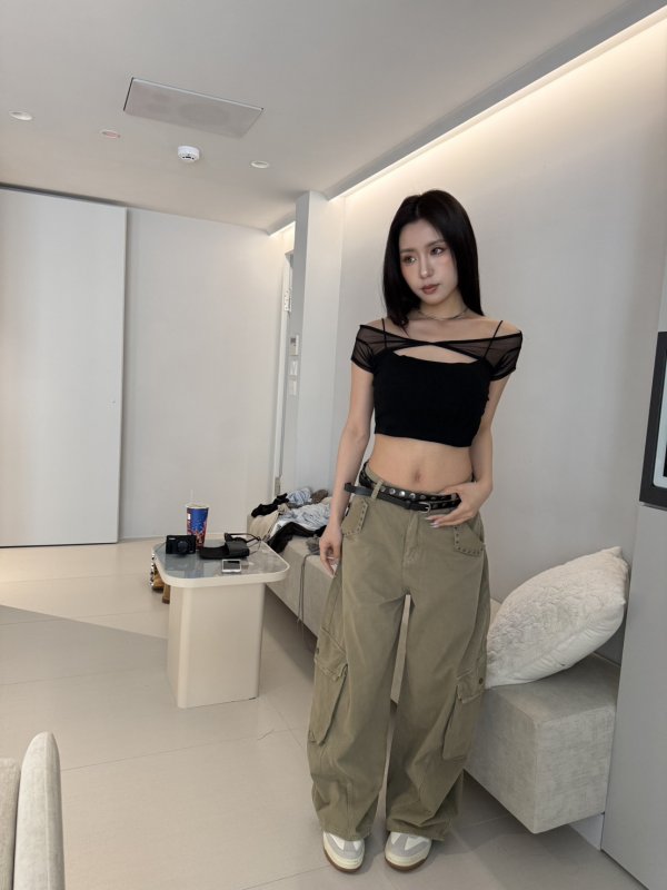 A89 排扣緞帶2件式胸墊韓妞短T 黑
